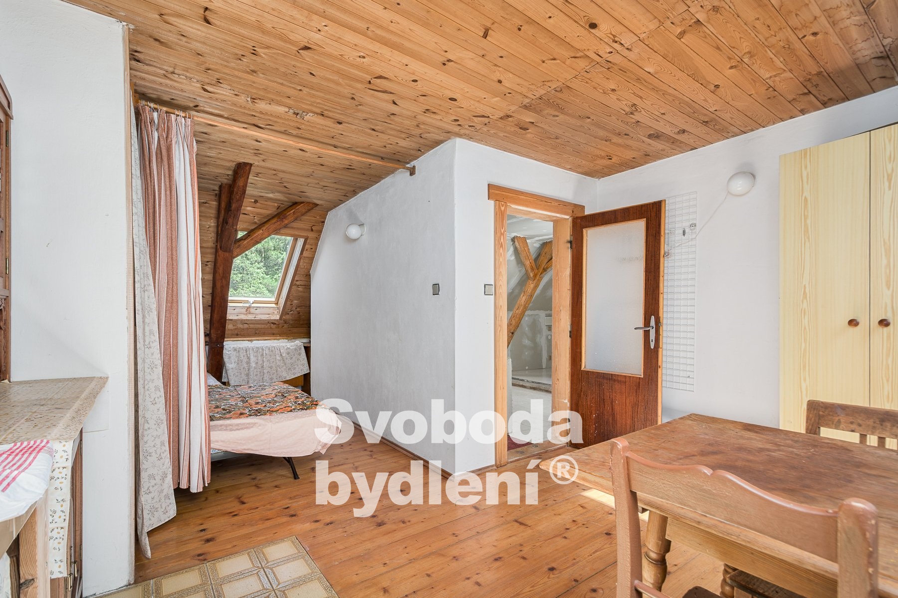 Chalupa (celkem cca 71m2) nabízí dispozici 2+kk bez sociálního zařízení. Hlavní obytná místnost - sednice (cca 38 m2) je vybavena kachlovými kamny, upravenými na přespání. Menší místnost (cca 13 m2) má stavebně zajímavou tzv. českou klenbu, další zajímavost nalezneme v prostoru chodbičky - dříve černá kuchyně se starší pecí, kdysi využívanou k pečení chleba. Poslední prostor s nižším stropem byl užíván jako sklad. Z předsíňky vedou dřevěné a poměrně strmé schody na neobydlenou půdu. Plocha této části budovy je cca 73 m2, výška stropu je v hlavní místnosti cca 2,4 m, u trámových překladů nižší. Půda nad touto částí má plochu cca 95 m2.