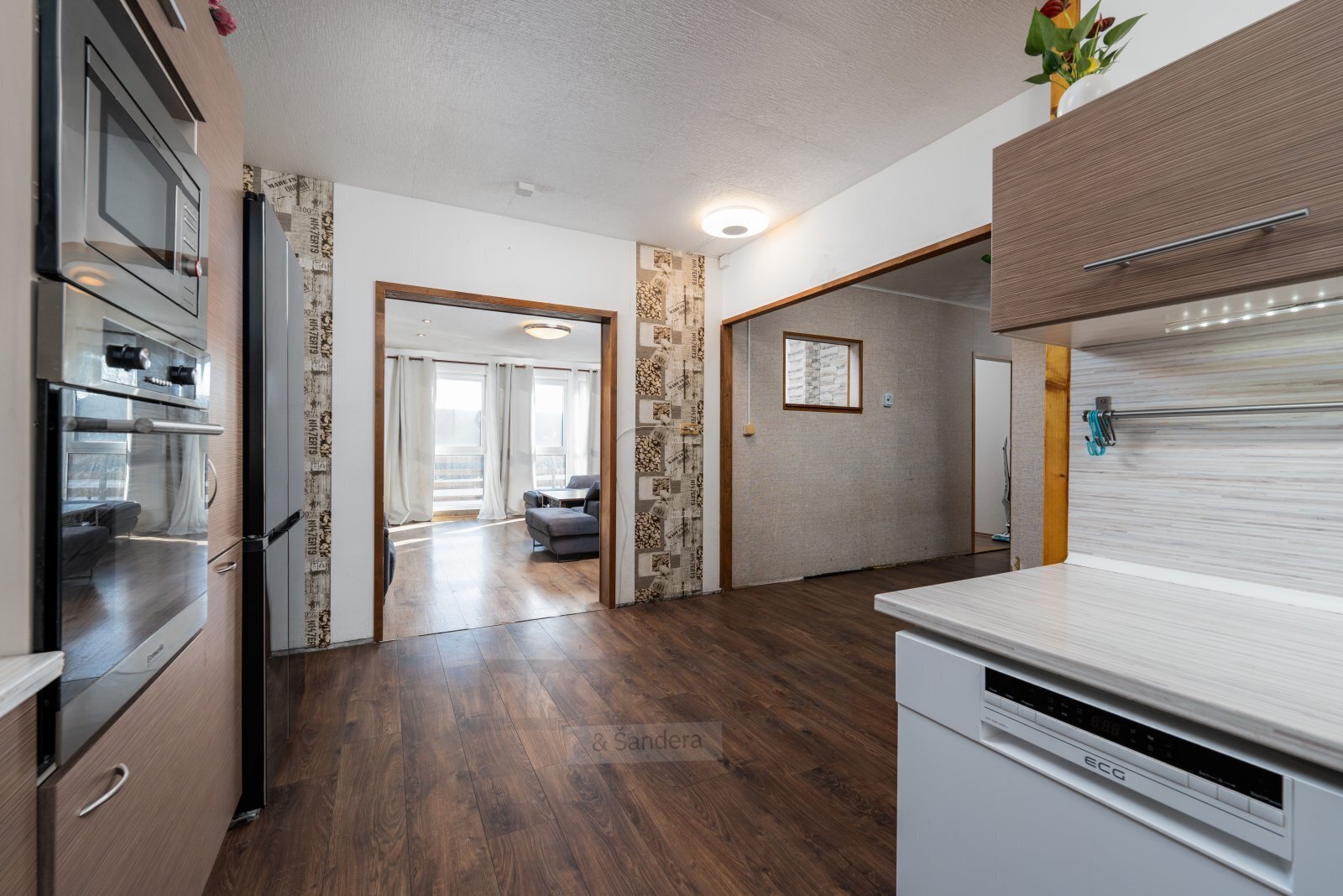 Druhé nadzemní podlaží nabízí komfortní a velmi prostorný byt o dispozici 4+kk s celkovou výměrou přibližně 114 m². Dispozice odpovídá moderním nárokům na bydlení – dominantou je velkorysý obývací pokoj propojený s kuchyní do tvaru U, která je vybavena vestavěnými spotřebiči. Dále se na tomto podlaží nacházejí tři samostatné pokoje, ložnice a koupelna s vanou. Příjemným benefitem je také balkon táhnoucí se po celé délce domu, který nabízí další venkovní prostor a příjemné posezení.