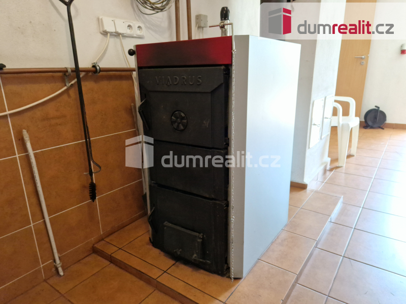 Vytápění kombinované, kotlem na tuhá paliva a elektrokotlem, voda z veřejného řadu, odpad napojen na vlastní čističku.