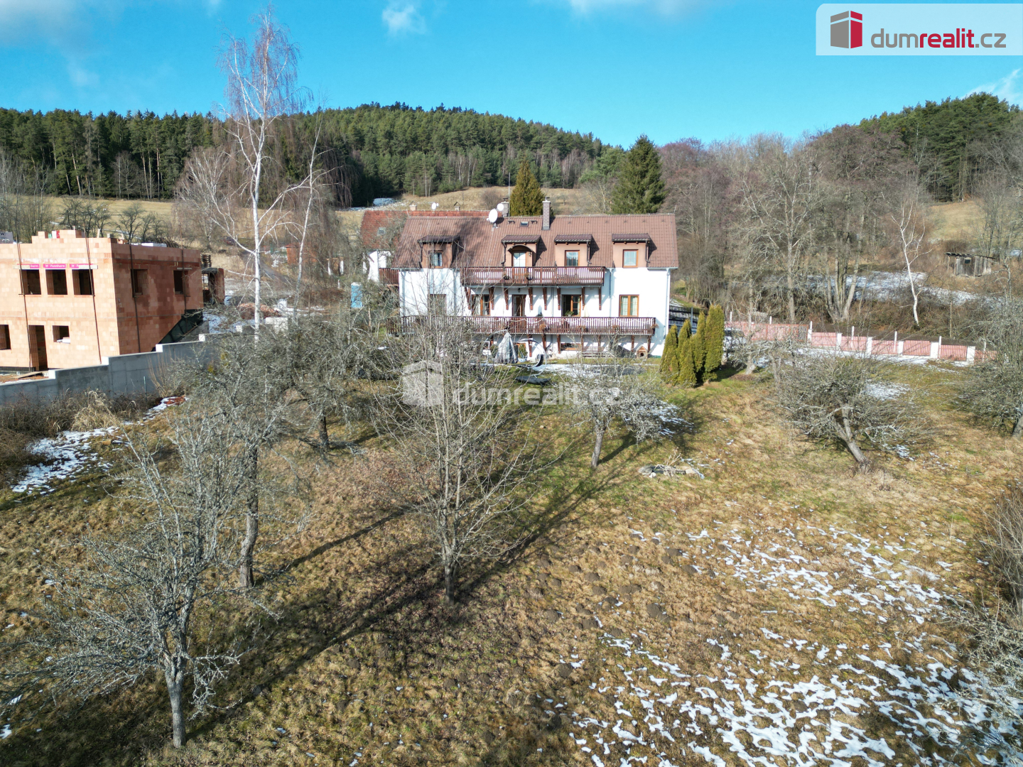 Zahrada se vzrostlými ovocnými stromy je východním směrem svažitá. Celková plocha pozemků 2140 m². Což znamená, že při nejmenší zastavitelné rozloze 1.000 m² dle místních kritérií je zde možnost výstavby ještě jednoho RD.