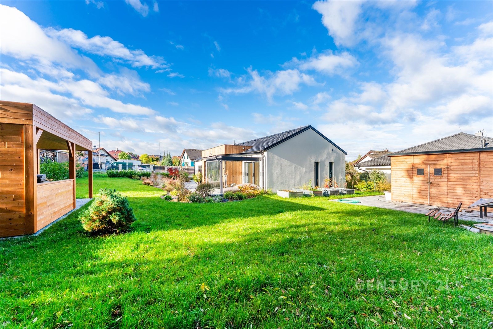 Tam, kde končí ruch města a začíná klid venkova, stojí vysoce moderní rodinný dům 4+kk v obci Zlatá. Tento elegantní jednopodlažní dům spojuje kvalitní vybavení a harmonii s okolní přírodou.