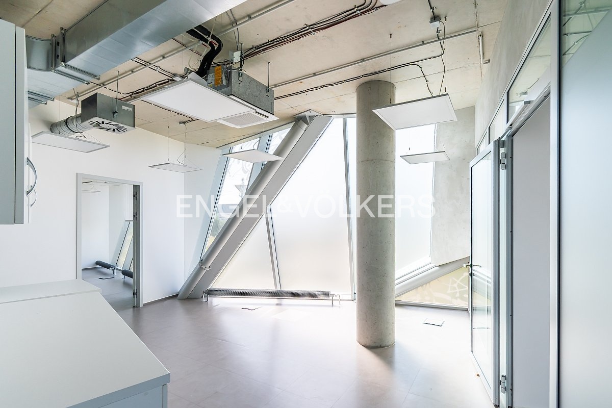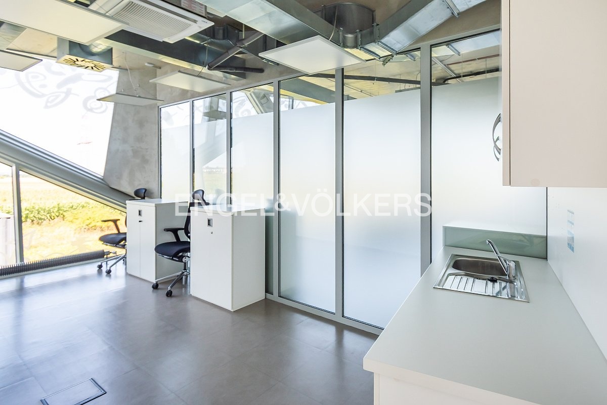 K dispozici jsou kancelářské prostory s kompletním sociálním zázemím včetně kuchyňky, je zde vstupní hala s recepcí, sdílené konferenční prostory a zasedací místnosti.