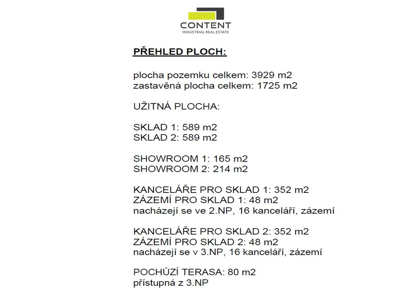 Pronájem sídla společnosti, skladové a prodejní prostory 2357 m²