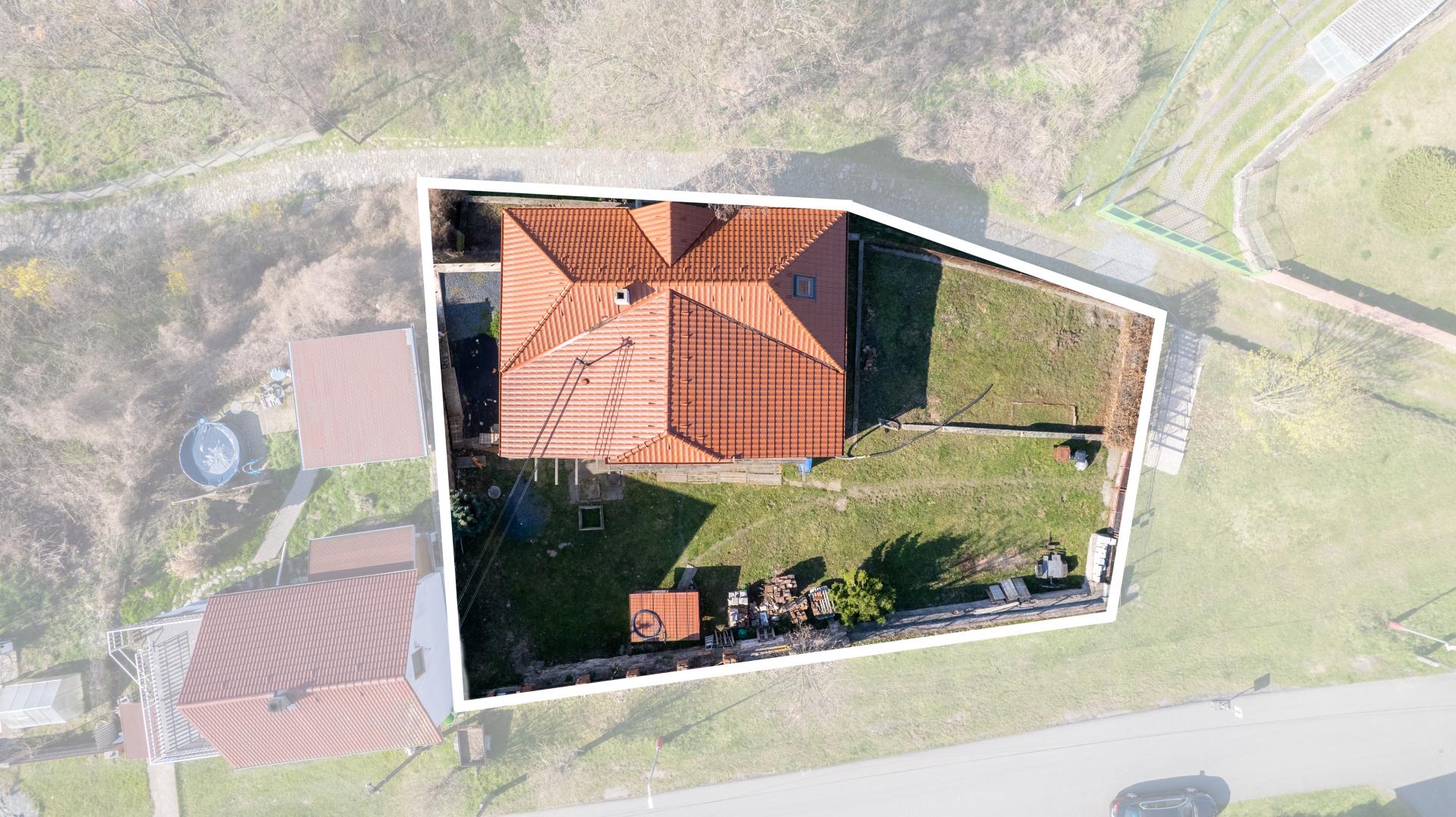 Zastavěná plocha činí 362m2, zahrada kolem domu je o výměře 199 m2 a nabízí dostatečný prostor pro odpočinek či menší zahradní úpravy. Dále k domu náleží svažitý pozemek pod domem (přes obecní cestu) o rozloze 934m2, který je v současnosti porostlý náletovou zelení. Jeho využití závisí na představách nového majitele.