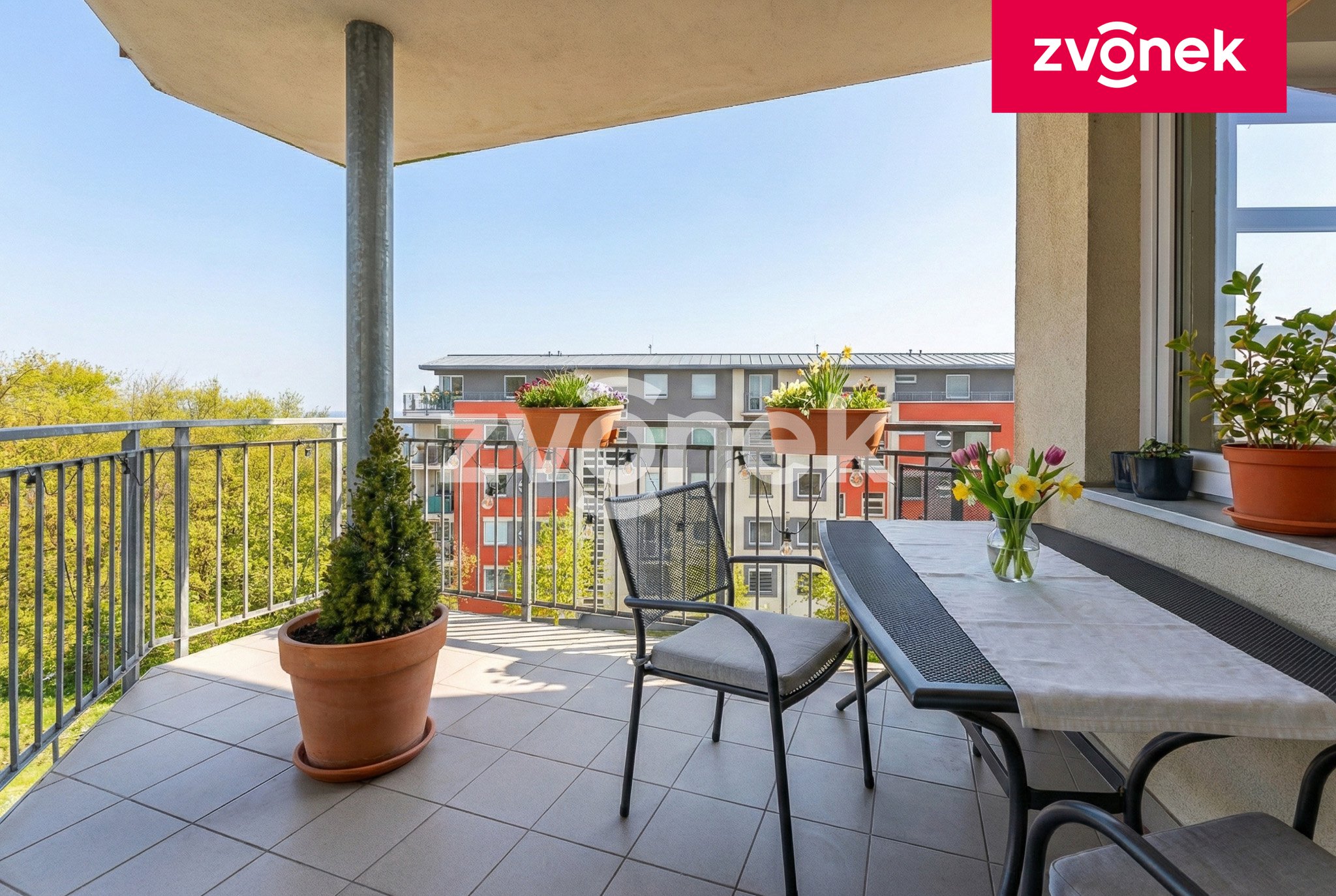 Po vstupu do bytu Vás přivítá prostorná chodba vybavená vestavěnými skříněmi, které chytře řeší uložení věcí pro celou rodinu. Srdcem domova je nadstandardně velký obývací pokoj, který plynule navazuje na kuchyni s jídelnou. Odsud je vstup na velkou terasu. Díky orientaci na jižní a západní stranu je byt po celý den krásně prosvětlený a nabízí nádherný výhled do okolí, který si můžete vychutnávat při ranní kávě nebo večerním posezení.