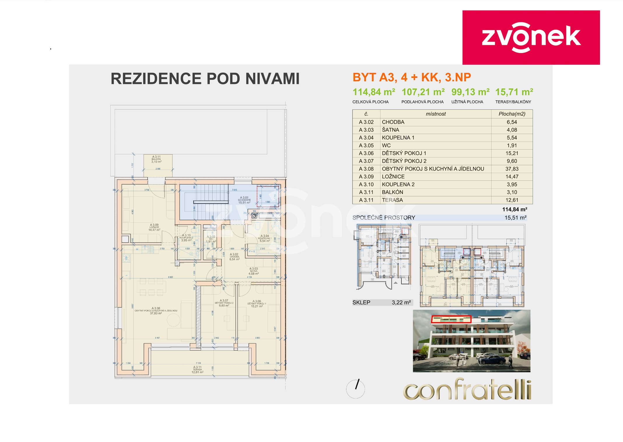 Byt 4+kk s terasou ve 3. NP, REZIDENCE POD NIVAMI - Budova A