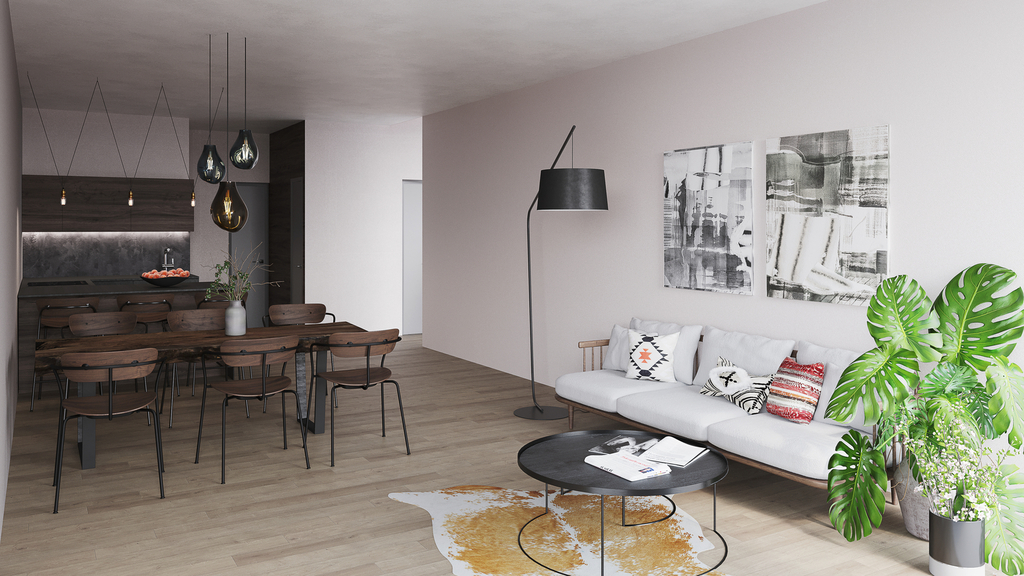 Byt bude dokončen ve fázi White Wall: hotové vnitřní příčky a omítky, kompletní elektroinstalace (včetně osvětlení potřebného pro kolaudaci), rozvody vody a odpadů. Klient si samostatně zajišťuje a vybírá podlahové krytiny, vnitřní dveře, obklady, sanitu, zásuvky, vypínače, osvětlení i kuchyňskou linku. Na přání lze zajistit dokončení na klíč – ve standardním nebo nadstandardním provedení.