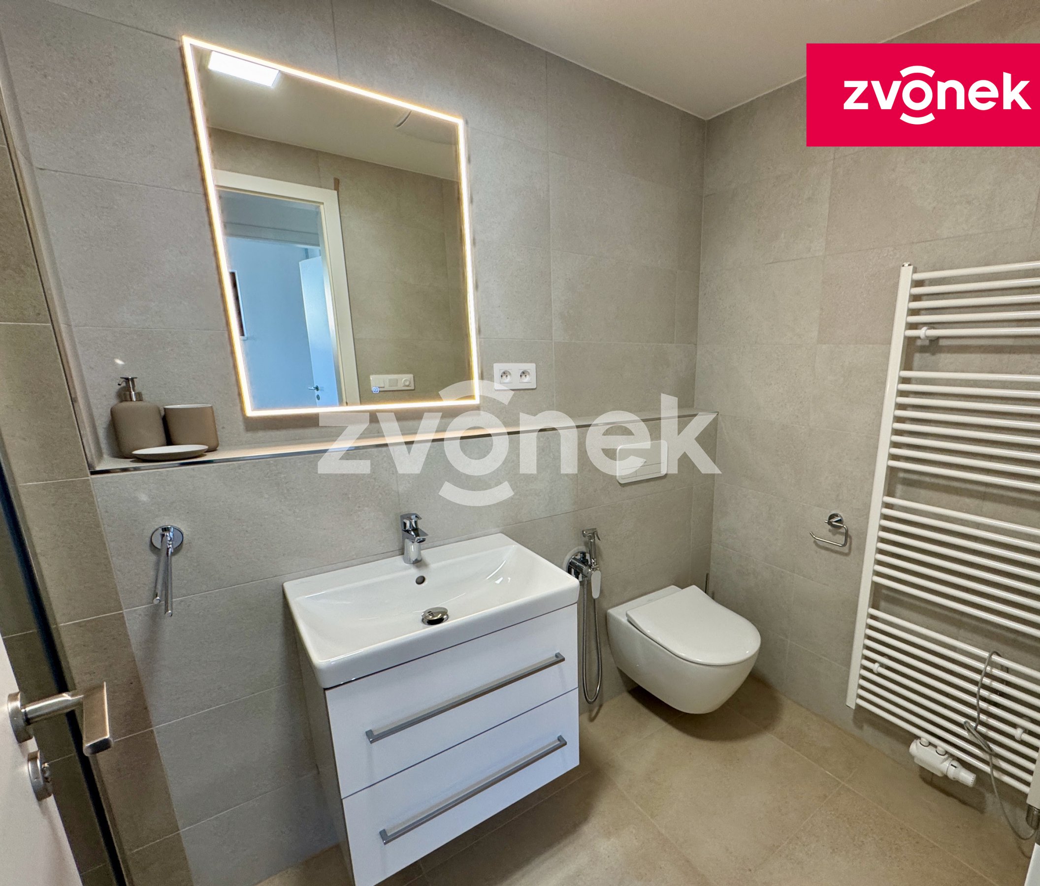 Nabízím Vám nově dokončený byt 2+kk s terasou a garážovým stáním v krásném prostředí nedaleko centra Zlína - Tyršovo nábřeží. Celková plocha bytu je 50 m² plus terasa 4m² a velký sklep na patře bytu (4m2). Dále je možné si pronajmout parkovací stání v suterénu domu za částku 2.000,-Kč/měsíčně. Byt se skládá ze vstupní chodby s vestavěnou skříní s botníkem a odkládacím prostorem, obývacího pokoje s kuchyňským koutem, ložnicí s vestavěnou skříní, koupelny se sprch. koutem a toaletou a komory s prostorem na pračku a sušičku. Byt bude částečně vybaven - kuchyňská linka se spotřebiči, sedací souprava v obývacím pokoji a manželská postel v ložnici. Měsíční nájemné činí 16.500 Kč, k tomu zálohy na energie ve výši 3.000 Kč (voda, topení). Elektřinu si nový nájemce převede na své jméno a platí zvlášť. Kauce ve výši 30 000 Kč se platí při podpisu nájemní smlouvy, stejně jako provize ve výši nájmu + DPH. Byt je vhodný nejvýše pro dvě osoby, nekuřáky, bez domácích mazlíčků.