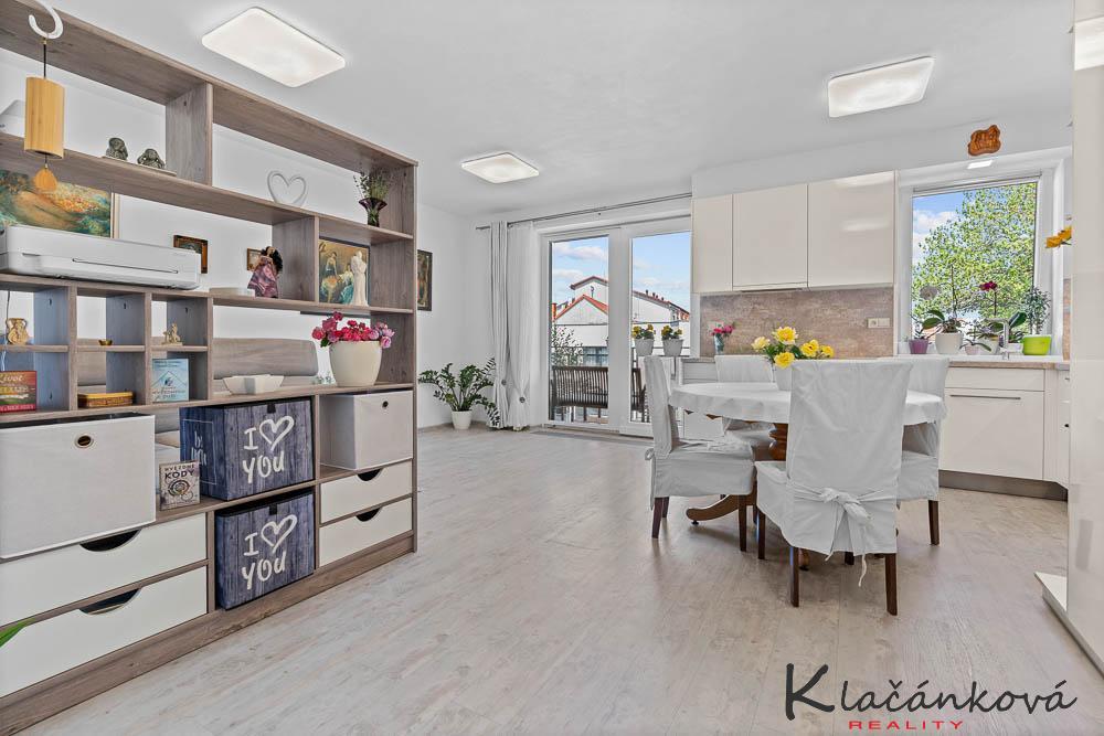 Nabízíme k prodeji byt s dispozicí 2+kk, o celkové rozloze 64,46m2. Prosluněný prostorný byt s orientací J/V strany. Byt se nachází ve 3NP ze 4 s výtahem, v moderní novostavbě v centru Malenovic, na rozhraní ulic třída Svobody a Stašova. Jedná se o vyhledávané, komfortní a klidné rezidenční bydlení a skvělou investiční příležitost. K bytu náleží sklep nadstandartních rozměrů 5,57m2, prostorný balkon 5,18m2. Interier bytu - prostorná vstupní chodba, ložnice, koupelna + wc samostatné. Prostorný obývací pokoj s elegantní a praktickou kuchyní na míru. Kuchyně v kvalitním provedení od studia Machálek interiér, v lesklém materiálu Fundermax, zimní bílá s kompaktním navazujicím úložným prostorem. Vestavěné spotřebiče /lednička, myčka, trouba, sklokeramická varná deska, digestoř/, Použité kování - Blum. Podlaha Vinyl - Thermofix, dlažba. Kolem domu dostatečné množství parkovacích stání. Možno dokoupit i garážové stání v přízemí či 1NP domu. Bydlení v atraktivní lokalitě s dostupnou veškerou OV /pošta, zdravotní středisko, školy, školky, restaurace, sportovní zařízení MHD/ .