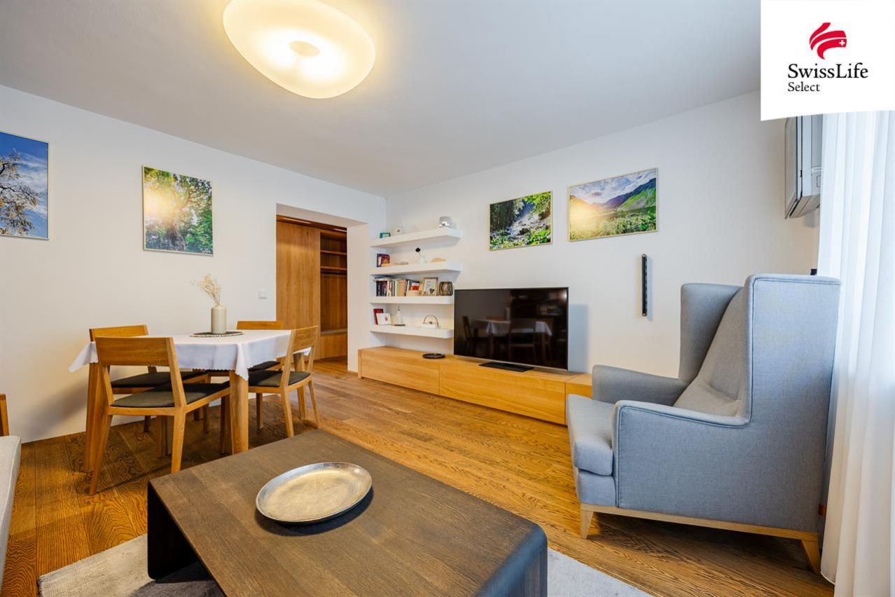 Dřevěné podlahy a podhledy s nepřímým LED osvětlením vytvářejí příjemné a útulné prostředí. Důraz byl kladen na detaily, které mají v každodenním provozu smysl zaoblené rohy stěny v ložnici podporují klidný charakter místnosti, vestavěné skříně nabízejí velkorysý úložný prostor a klimatizace zajišťuje komfort i v letních měsících, aniž by narušovala celkový vzhled interiéru. Součástí vybavení jsou také zabudované kuchyňské spotřebiče a bezpečnostní vchodové dveře s izolací.