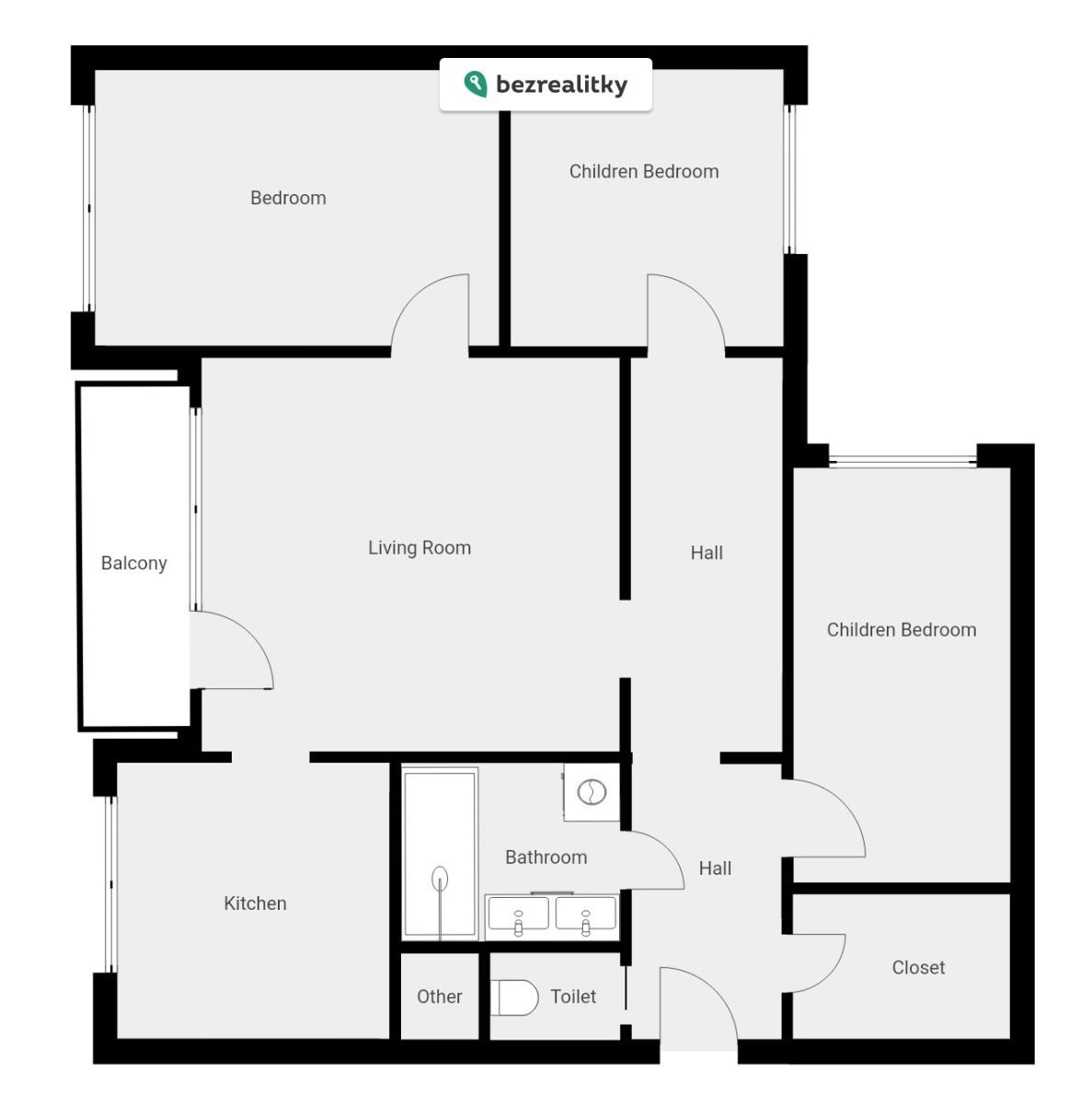 Dispozice bytu zahrnuje obývací pokoj se vstupem na balkon, tři samostatné neprůchozí ložnice, kuchyni, koupelnu, oddělené WC, prostornou předsíň a praktickou šatnu. K bytu náleží také sklepní kóje.