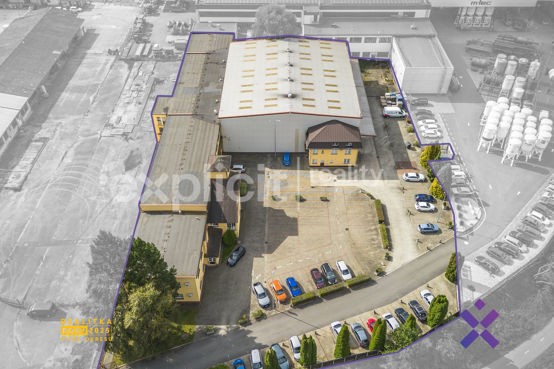 - dvě hlavní části: hlavní administrativně–skladová budova 1 182 m² + přístavba haly se sklady a kancelářemi 1 292 m²