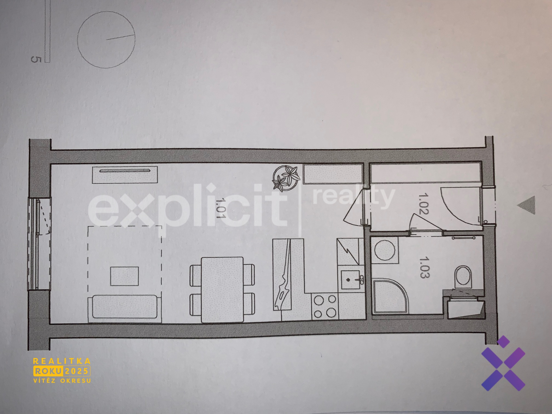 Dispozice bytu:1+kk