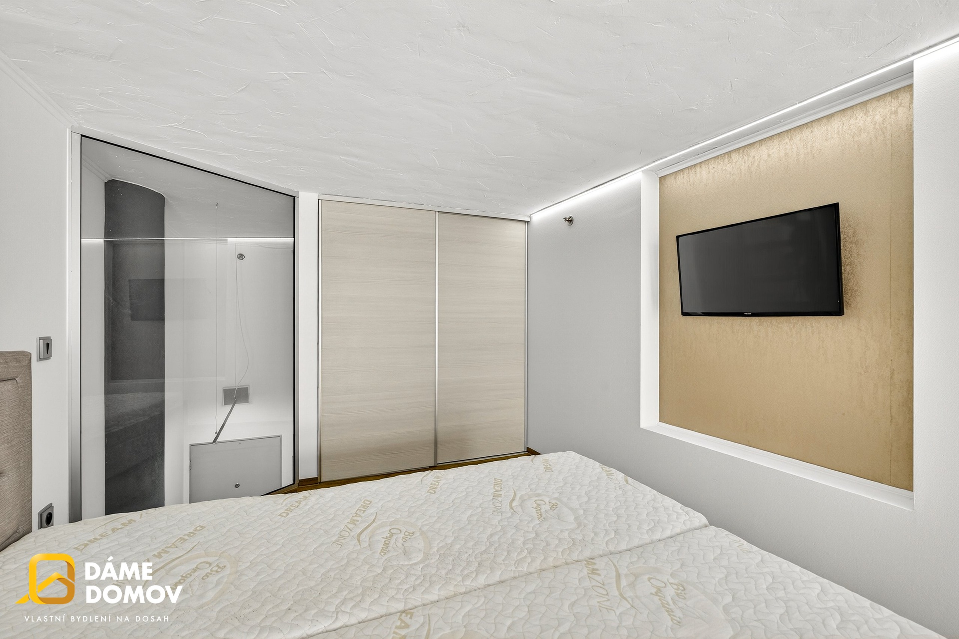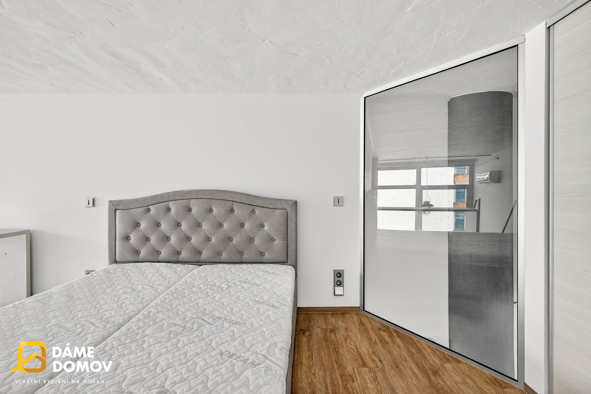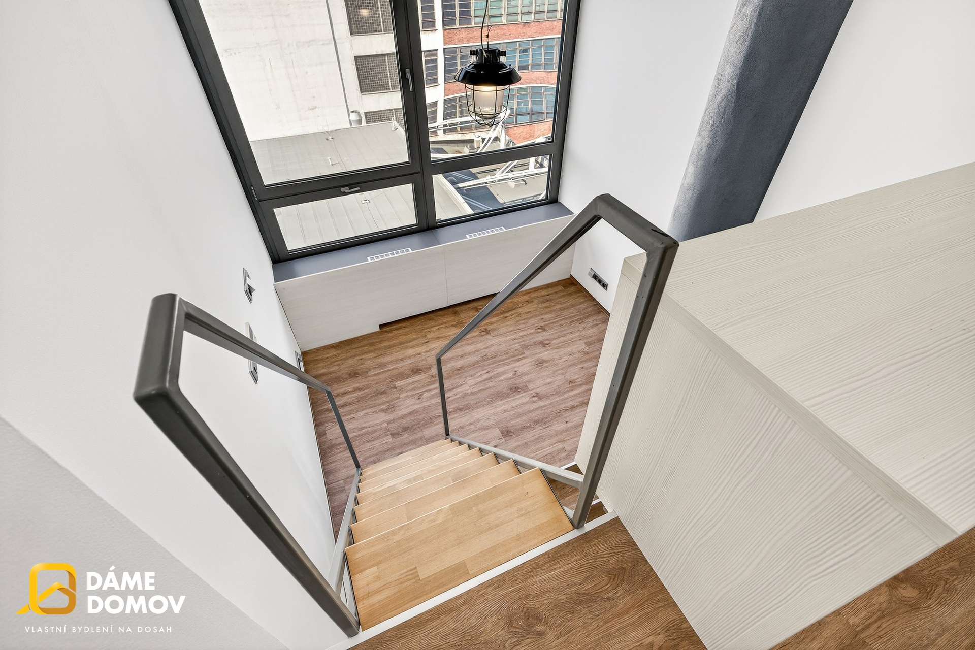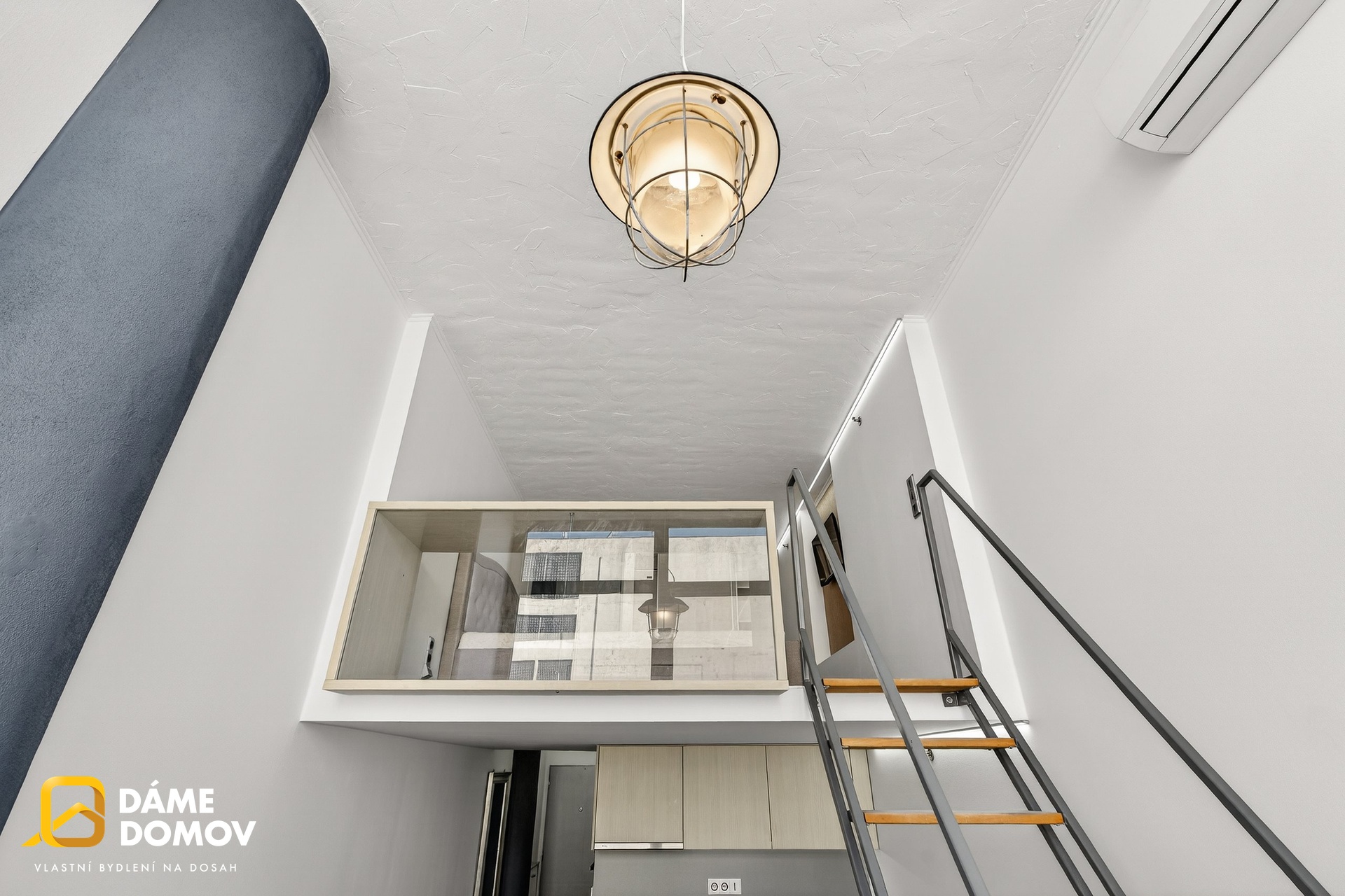 Byt je loftový a je dispozičně řešen jako 2+kk, kdy ve spodní části bytu je koupelna, šatna, kuchyň, obývací pokoj a v horní části pak ložnice s části pro pracovnu a vestavěné skříně.