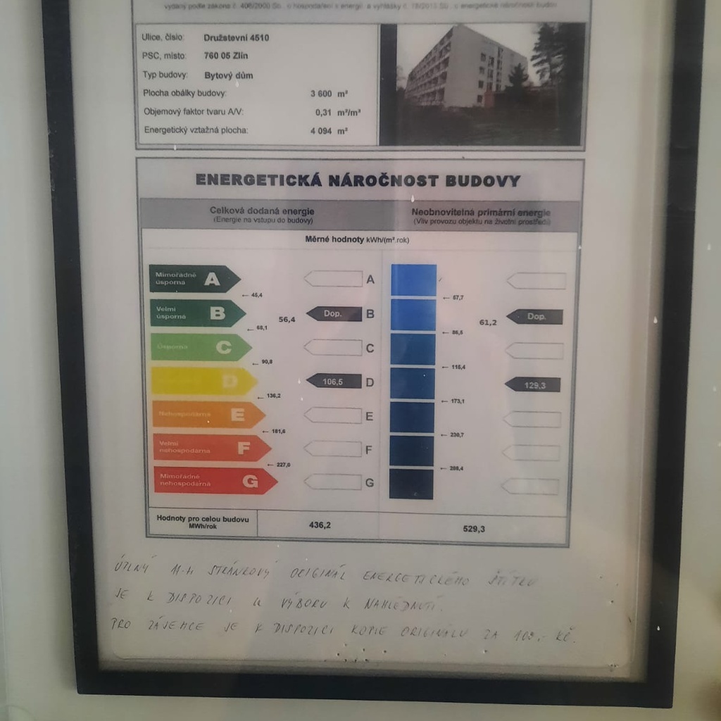 Ukazatel energetické náročnosti budovy:106 kWh/m²