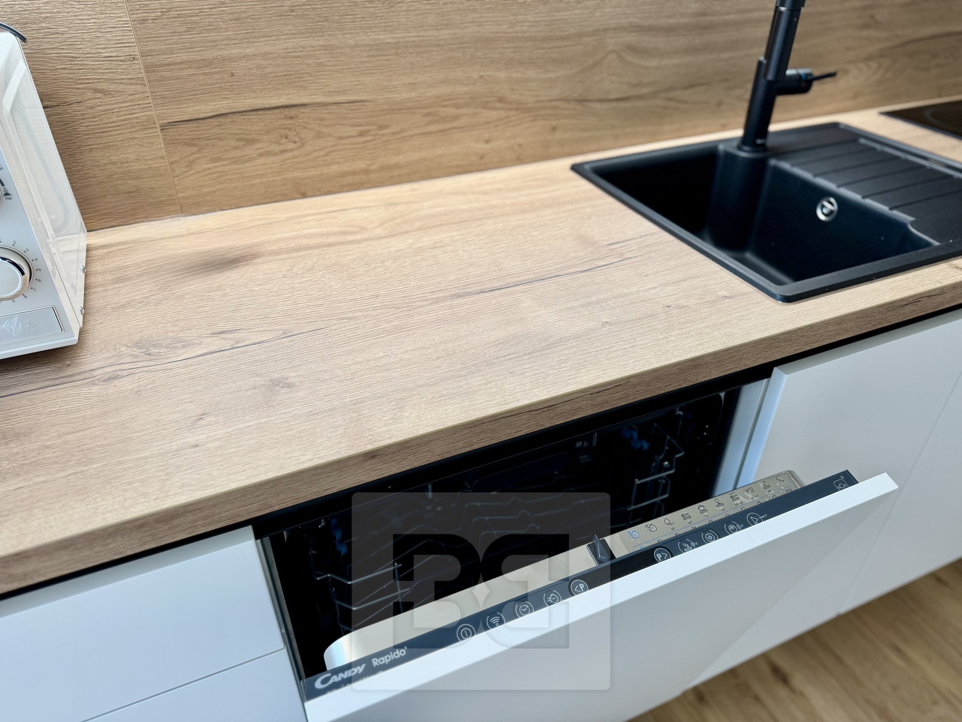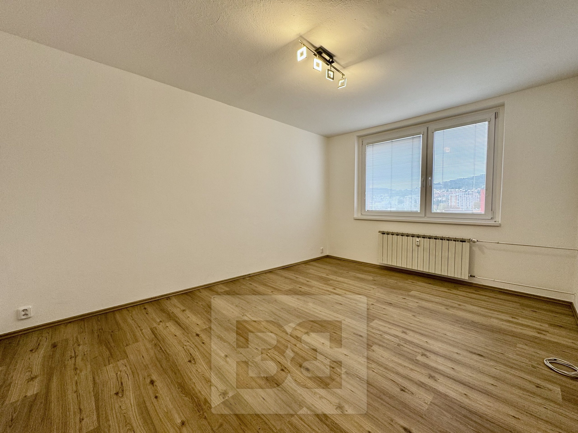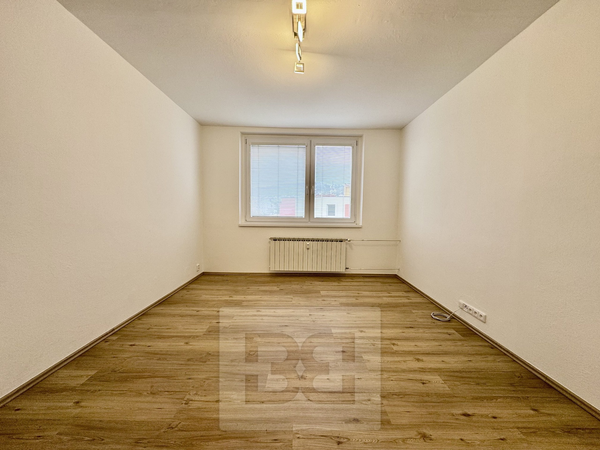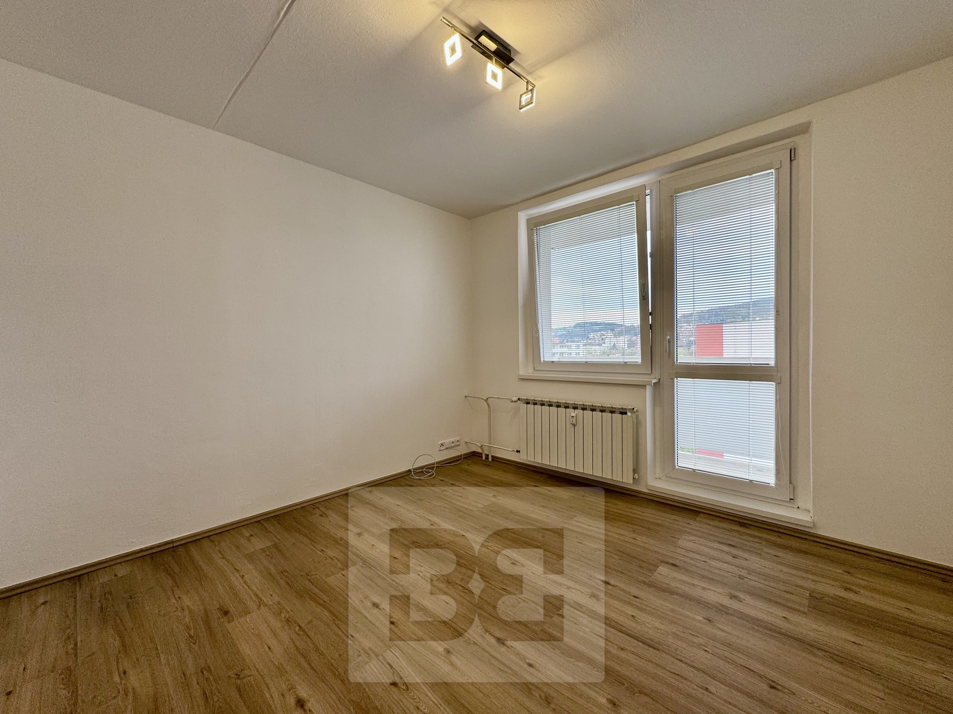 Dispozice bytu tvoří prostorná předsíň s dostatkem úložného prostoru, dva samostatné pokoje, přičemž jeden z nich má přímý vstup na balkon s příjemným výhledem. Dále je k dispozici nová kuchyně vybavená vestavěnými spotřebiči – myčka, varná deska, trouba, digestoř a mikrovlnná trouba, nechybí ani jídelní stůl se židlemi. Koupelna je moderní a vkusně řešená, toaleta je samostatná a doplněná umyvadlem.