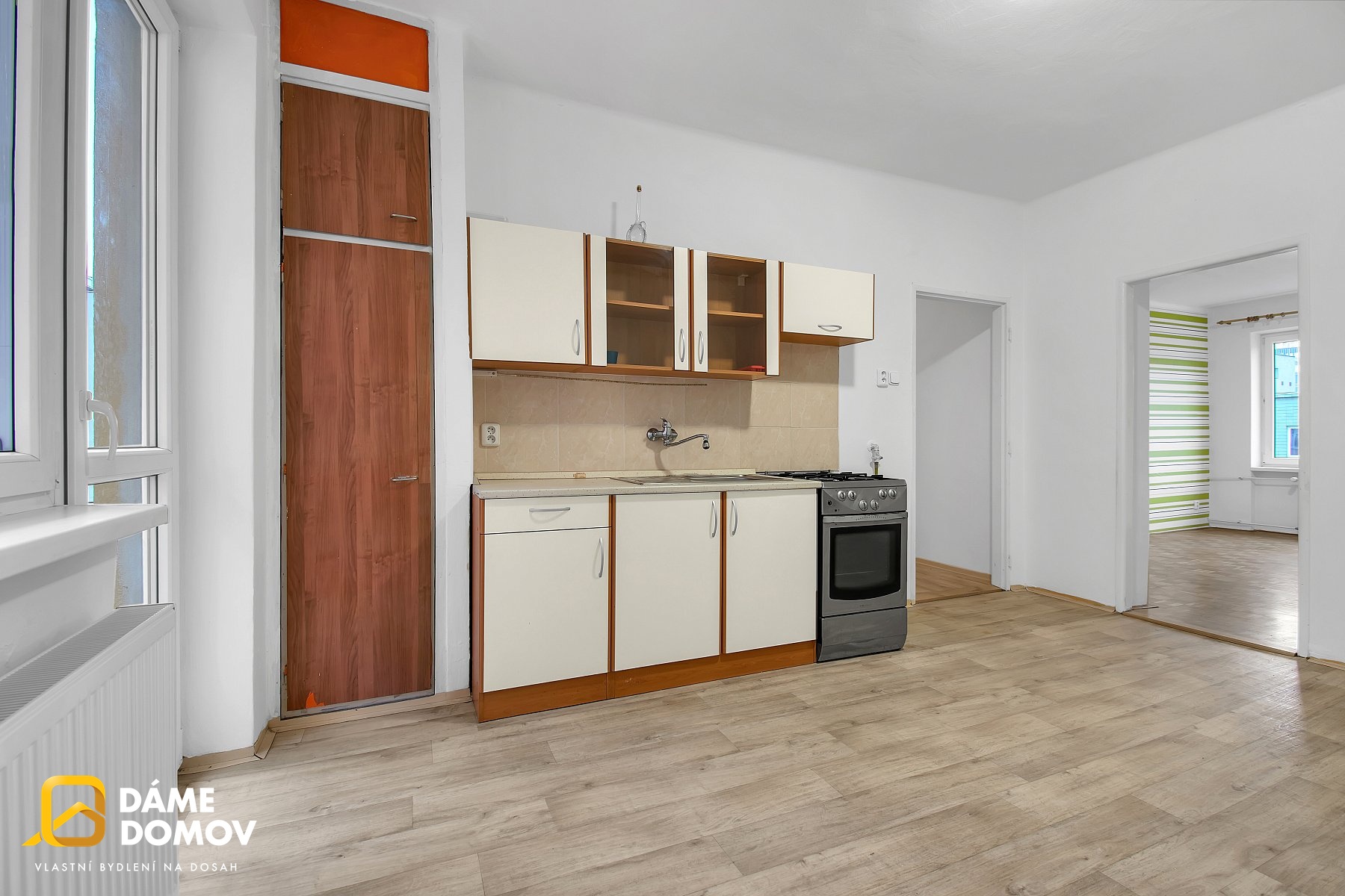 Tento prostorný a světlý byt má velké, neprůchozí pokoje, prostornou kuchyň, s dostatkem místa na jídelní kout, ze které se vstupuje na balkón, orientovaný do dvora. Byt se nachází ve 3. patře malého, zatepleného bytového domu, což obyvatelům bytu zajišťuje klid a soukromí. Byly částečně vyměněny podlahy a je vyměněná kuchyňská linka. Součástí bytu je prostorná komora a k dispozici je také sklep.
