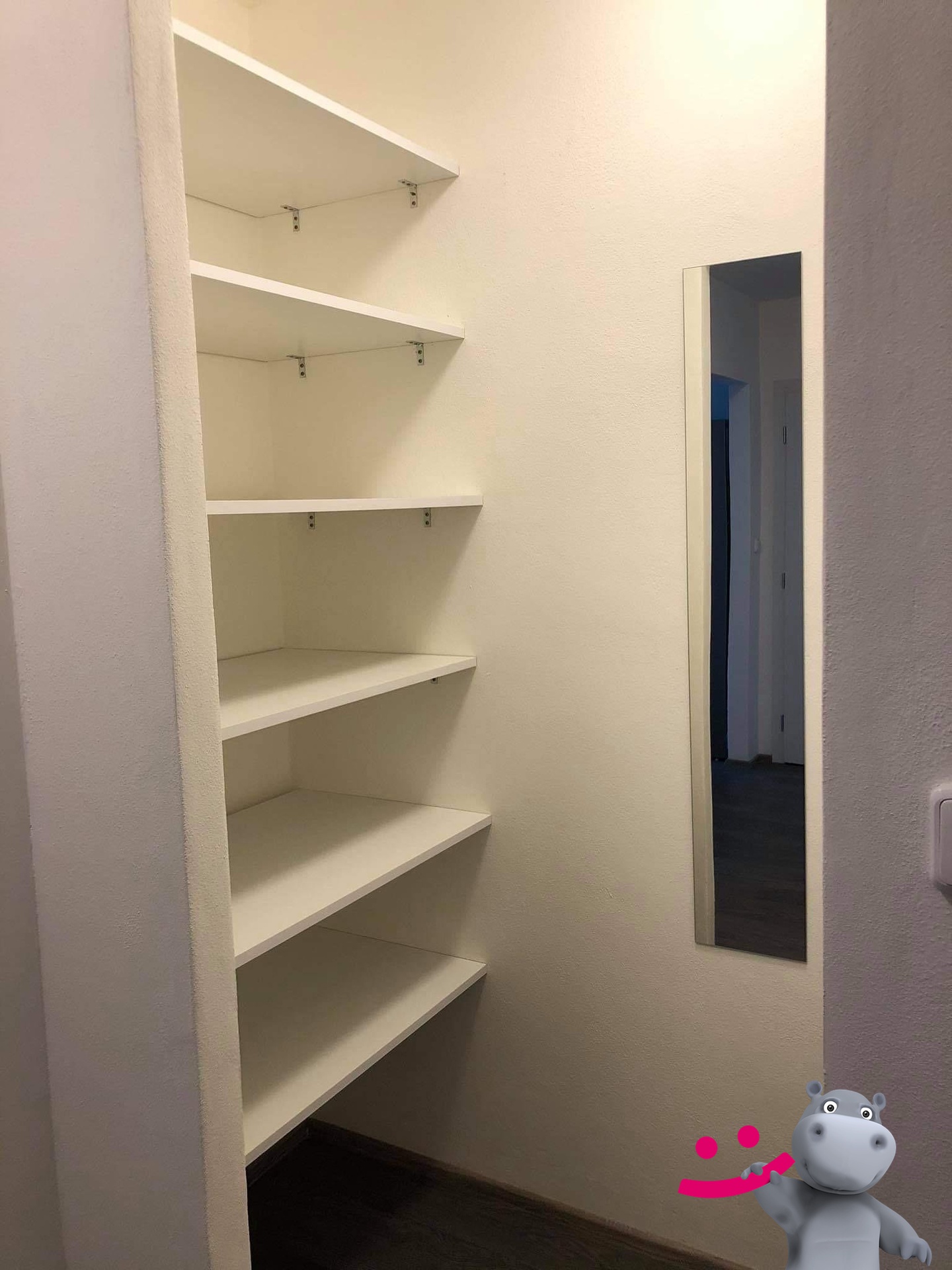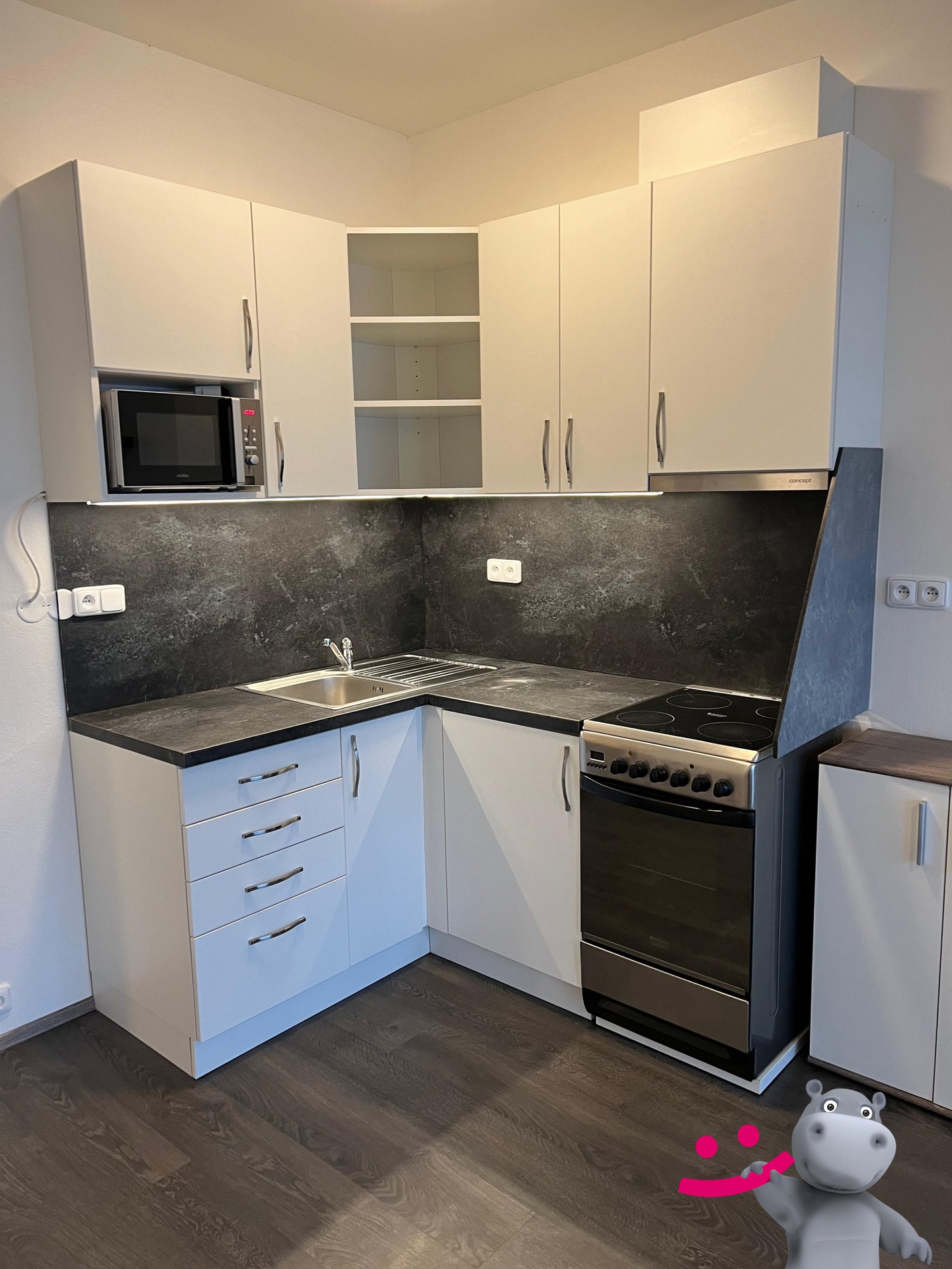 Byt je zařízen kuchyňskou linkou s vestavěnými spotřebiči, menší šatnou, je částečně vybavený TV stěnou, stolem + 2x židle. Součástí je sklep.