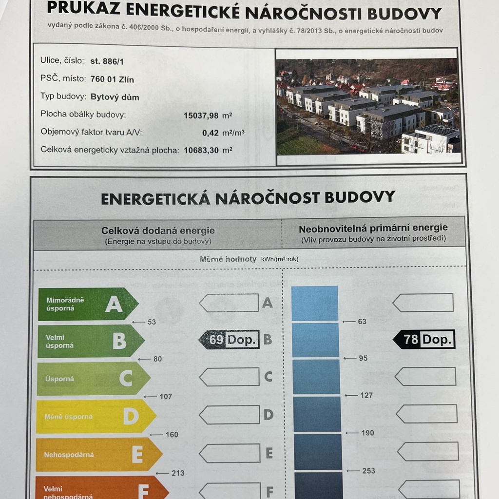 Ukazatel energetické náročnosti budovy:69 kWh/m²