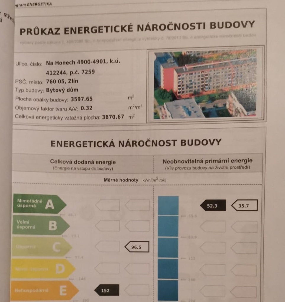 Ukazatel energetické náročnosti budovy:152 kWh/m²