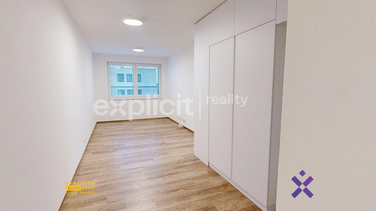 K dispozici je vkusná kuchyně vybavená značkovými spotřebiči SIEMENS včetně lednice s mrazákem, varné desky, digestoře, myčky, mikrovlnné i pečící trouby. Byt je vybaven vestavěnými skříněmi, které velmi elegantně navazují na kuchyňskou linku a obývací pokoj, v ložnici je další prostorná skříň na oděvy, zhotovená na míru a také východ na balkon.