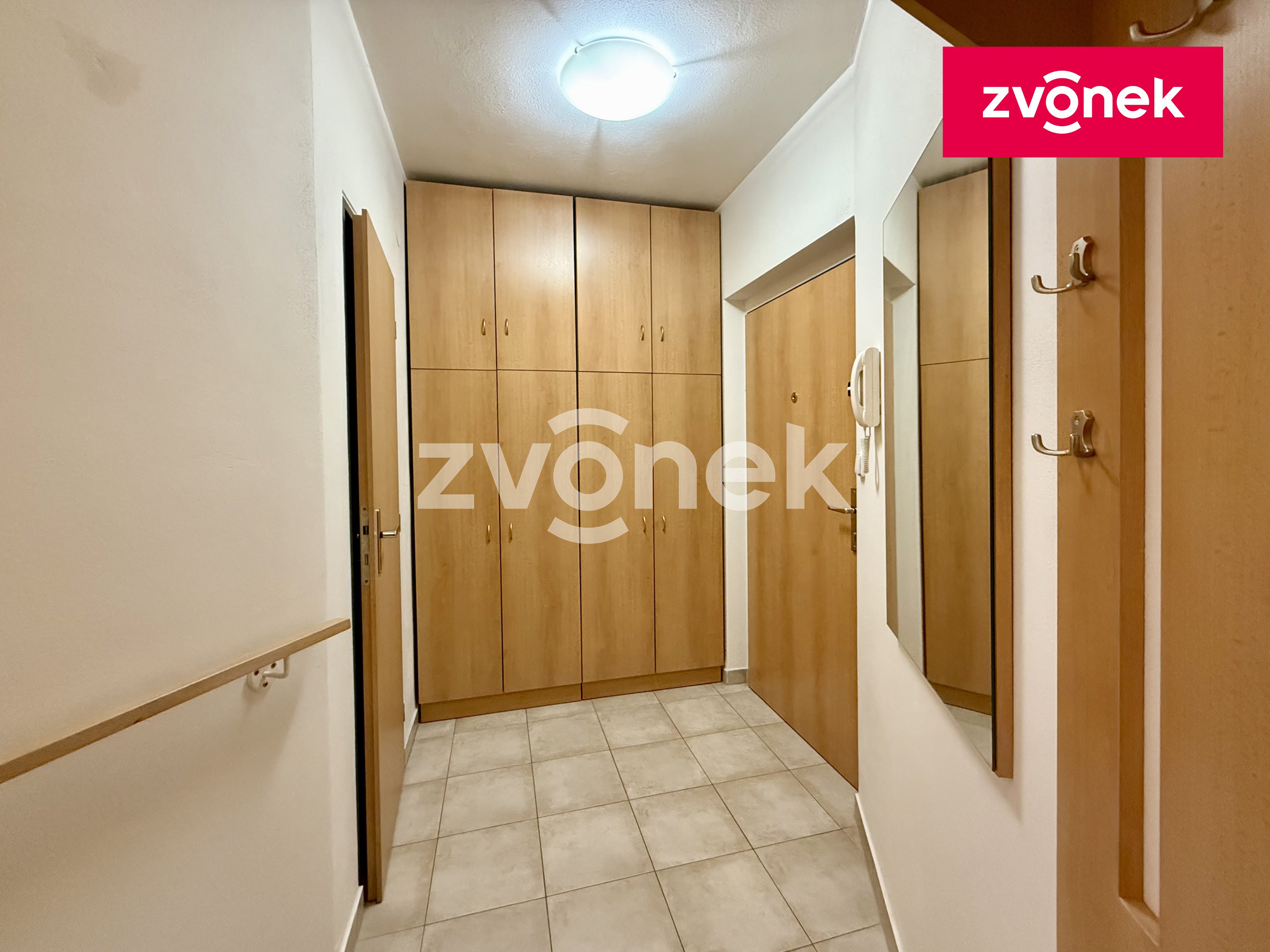 Pronájem zděného bytu 2+kk s terasou a sklepem ve Zlíně, v oblíbené lokalitě na okraji sídliště - Podlesí V, poblíž lesa a přírody. Dům má celkem šest obytných podlaží s výtahem, v 1. PP jsou umístěny sklepy a parkovací stání. Byt se nachází ve 2. podlaží, všechny pokoje, i terasa s pěkným výhledem, jsou orientovány na západ. V bytě vstupujeme do prostorné chodby s vestavěnými skříněmi, botníkem a odkládací stěnou, Z chodby vejdeme do koupelny vybavené vanou, umývadlem a skříňkou, dále je zde umístěno i WC. Centrum bytu je tvořeno prostorným obývacím pokojem, kde je na jedné straně kuchyňská linka (myčka, varná deska, digestoř, trouba, lednice s mrazničkou) a na druhé straně obývací prostor určený pro umístění sedací soupravy a stěny, uprostřed je východ na terasu. Z obývacího pokoje projdeme do ložnice, kde je prostor na umístění dvojlůžka i skříní. Celkově je byt slunný a zajímavě řešený. Na chodbě a v koupelně je položena dlažba, v pokojích lamino. Byt je vybaven kuchyňskou linkou se spotřebiči a vestavěnými skříněmi na chodbě, pokud bude mít budoucí nájemce zájem, lze byt dovybavit nábytkem. K bytu náleží sklep. Byt je k nastěhování ihned, zavolejte, ráda Vám zařídím rychlou prohlídku!