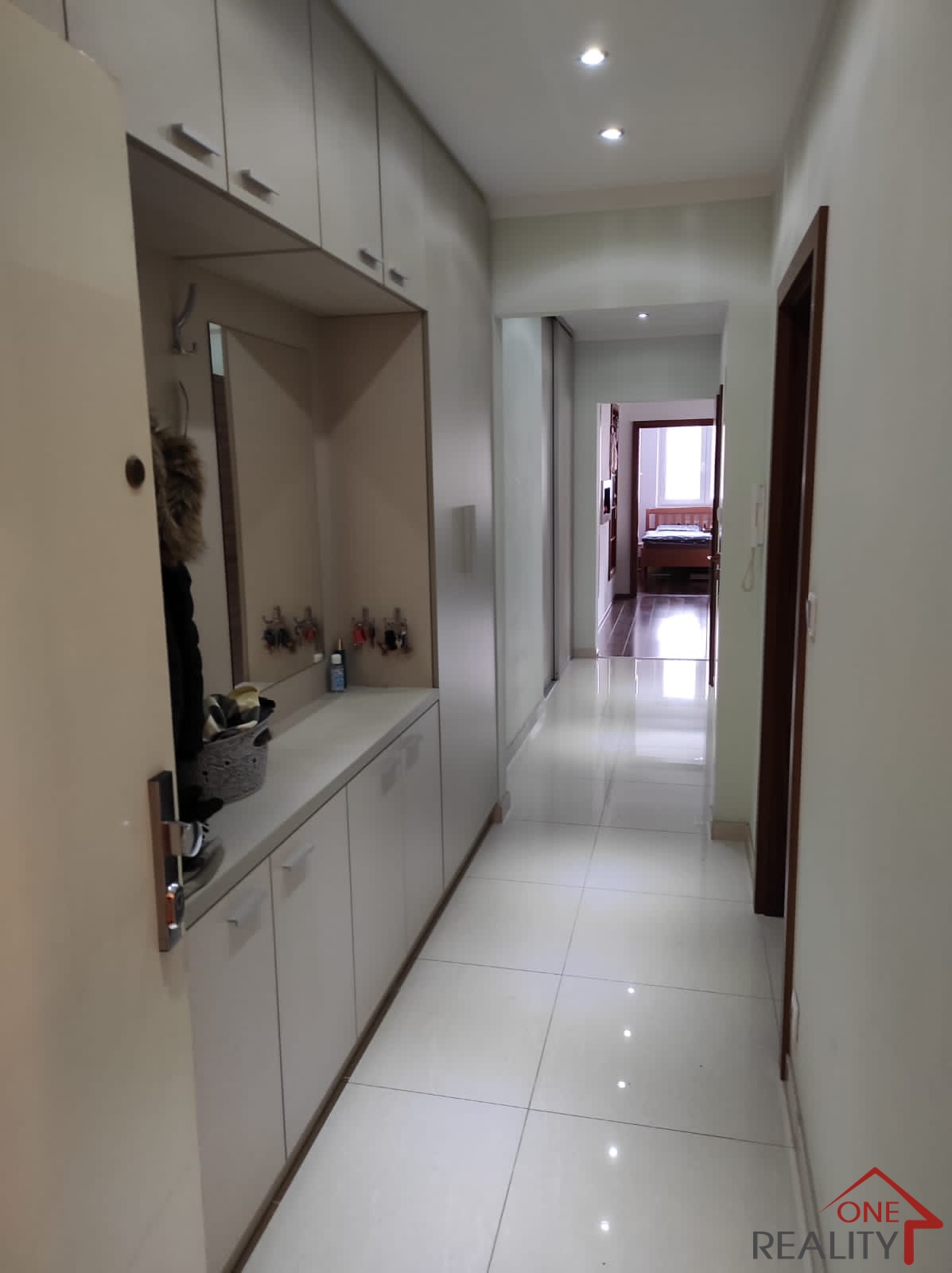 Byt o výměře 85 m² tvoří: vstupní chodba s vestavěnou šatní skříní, 3 samostatné ložnice, obývací pokoj s Bio krbem, odkud je vstup na balkon, kuchyně s kuchyňskou linkou, koupelna s vanou a samostatná toaleta.