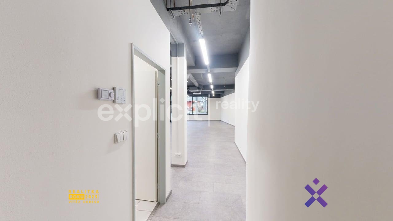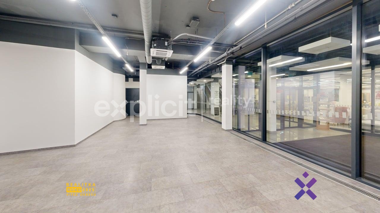Obchodní prostor má velkou prosklenou výlohu, kterou můžete využít k propagaci Vaší firmy. MHD je v dosahu několika metrů.