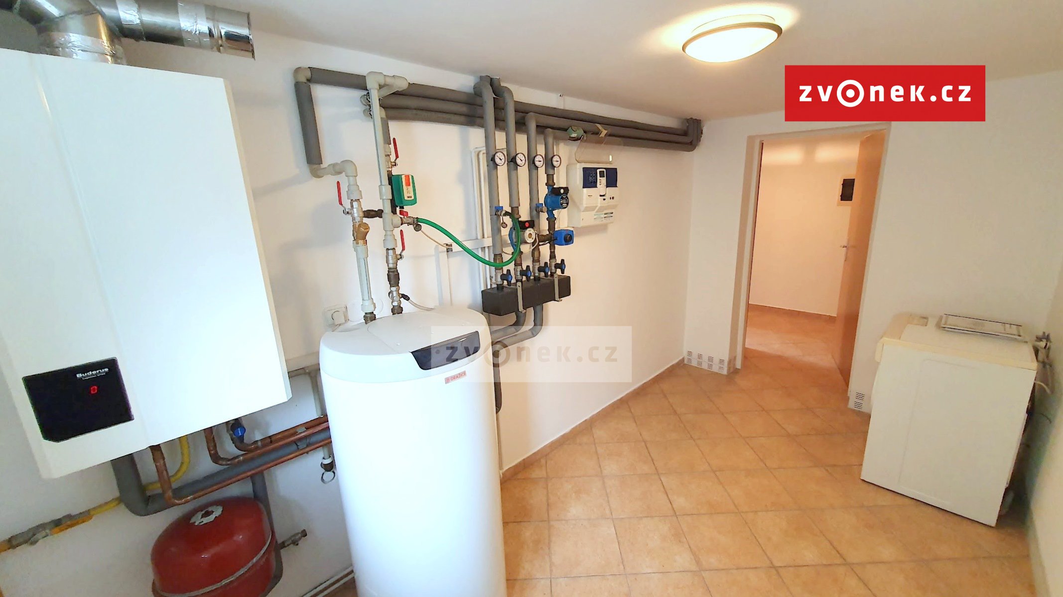 Spodní patro: tělocvična vybavená multifunkční posilovací věží Kettler, rotopedem, + další nářadí. Kotelna – kotel Buderus 2 topné okruhy, podlahovka v přízemí a radiátory v patře. Sklepní prostory včetně druhého přípojného bodu a místa na pračku.