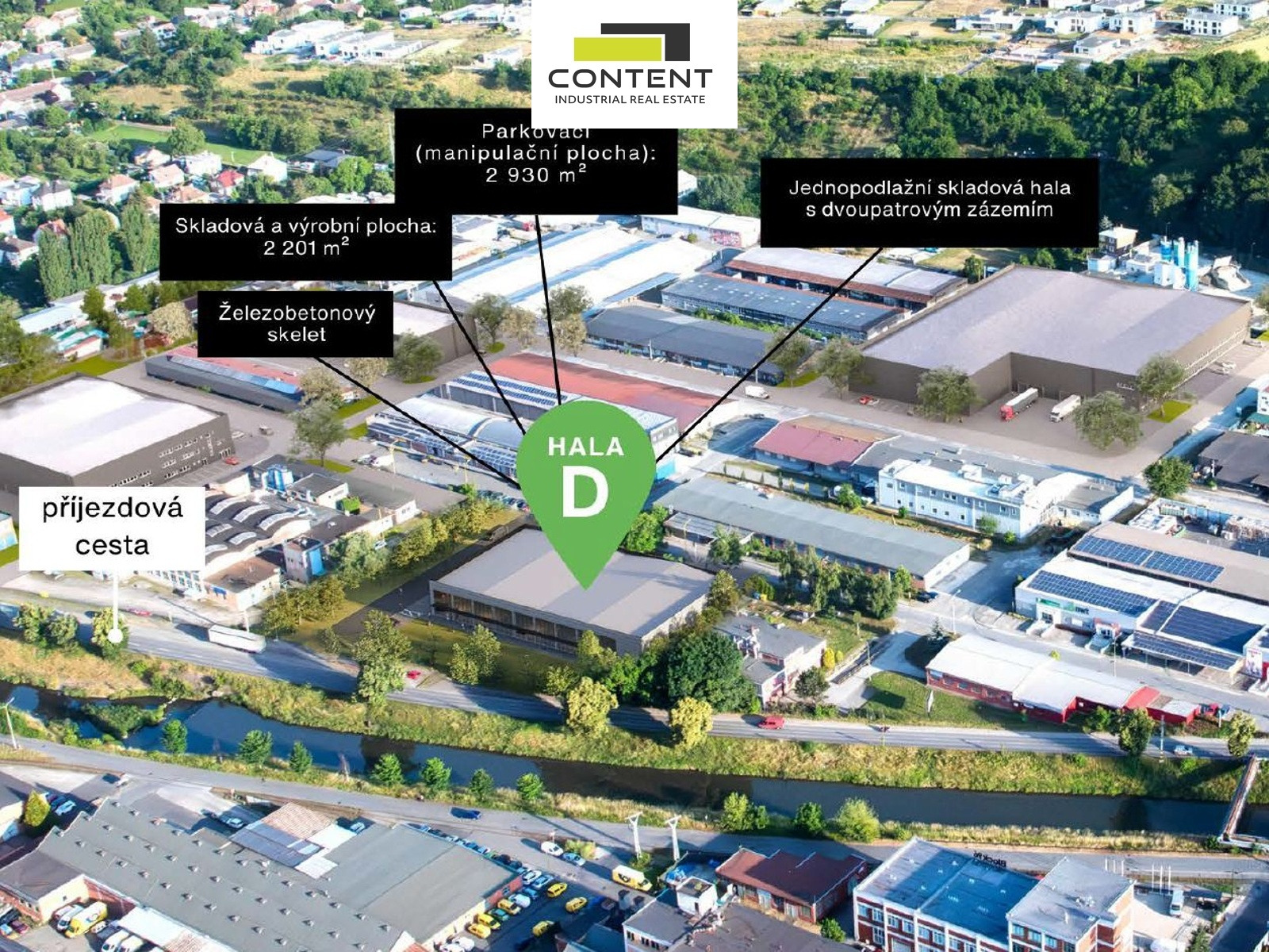 V zastoupení majitele a bez provize nabízíme industriální prostory, vhodné pro sklad nebo výrobu, o velikosti 980 - 7200 m², umístěných v komerčním areálu poblíž centra Zlína s napojením na dálnici D55 (10 km).