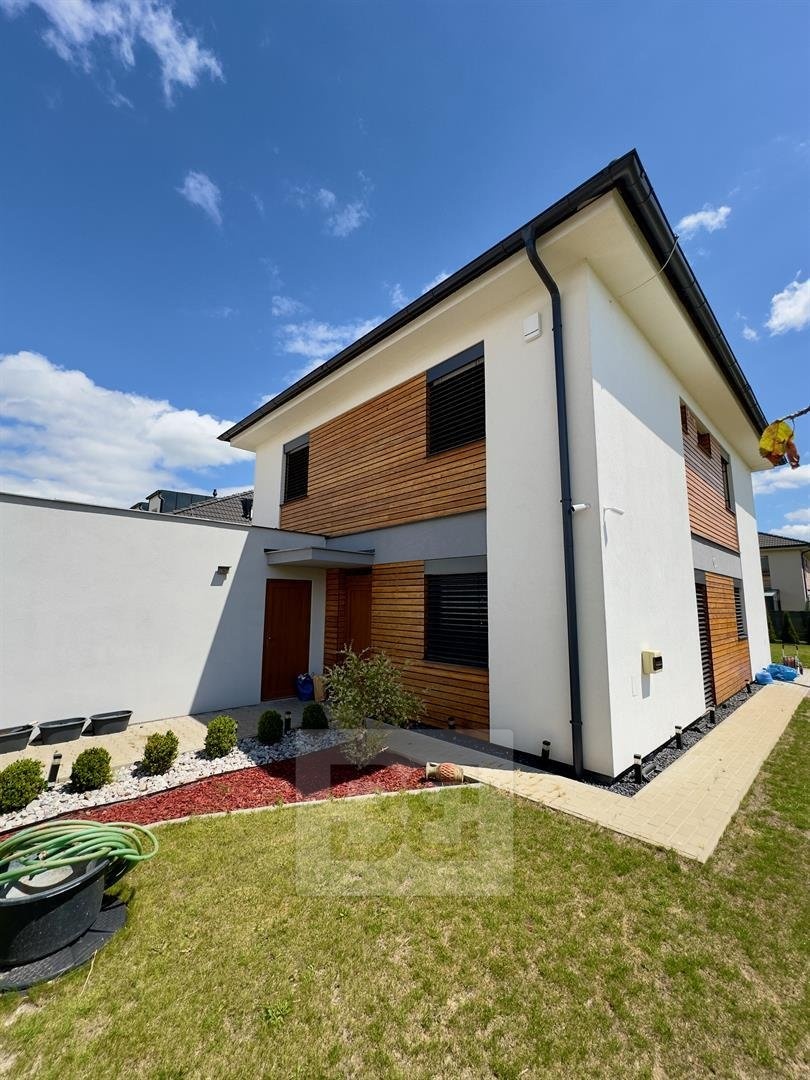 Nabízíme Vám pronájem patrového rodinného domu s obytnou plochou 144 m² a zahradou 350 m², v ulici Borová - obec Zlonín. Přízemí se sestává ze vstupní chodby, koupelny se sprchovým koutem a toaletou, k dispozici je pračka a sušička, pokoje pro hosty s vybavením viz foto, komory v prostoru pod schodištěm a obývacího pokoje s kuchyňským koutem plně vybaveným vestavnými spotřebiči. Zůstává americká lednice a ostatní vybavení vyjma TV, pohovky a konferenčního stolku. Z obývacího pokoje lze vejít na terasu 17 m² s elektrickou markýzou a zastíněním, dále na zahradu 350 m², s nádrží na dešťovou vodu o objemu 14 m³. Po schodišti vyjdeme do prvního patra, které se sestává z haly, samostatné toalety, koupelny s vanou, dvou pracoven, které zůstanou prázdné, pod dohodě lze nechat stolky a křesla, ložnice s prostornou skříní a dětského pokoje. K domu náleží garáž 37 m². Zde zůstávají regály, druhá lednice, gril, změkčovač vody a zahradní vybavení. V oknech nainstalovány předokenní žaluzie, chytrá domácnost ovládána mobilní aplikací, druhý vodoměr na užitkovou vodu, která je levnější o 50%.