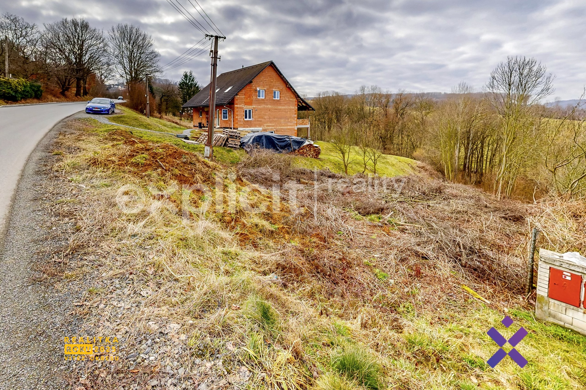 Pozemek má obdélníkový tvar (cca 90 × 15 m), leží pod úrovní asfaltové cesty a je svažitý, což mu dodává charakter a umožňuje skvělý výhled na protější kopce. Z celkové plochy je zhruba dvě třetiny stavební, vhodné k výstavbě rodinného domu, zatímco zbytek poskytuje prostor pro zahradu, terasu nebo klidné posezení v přírodě. V územním plánu je veden jako plocha pro bydlení a v okolí již probíhá výstavba novostaveb, což z něj činí perspektivní investici.