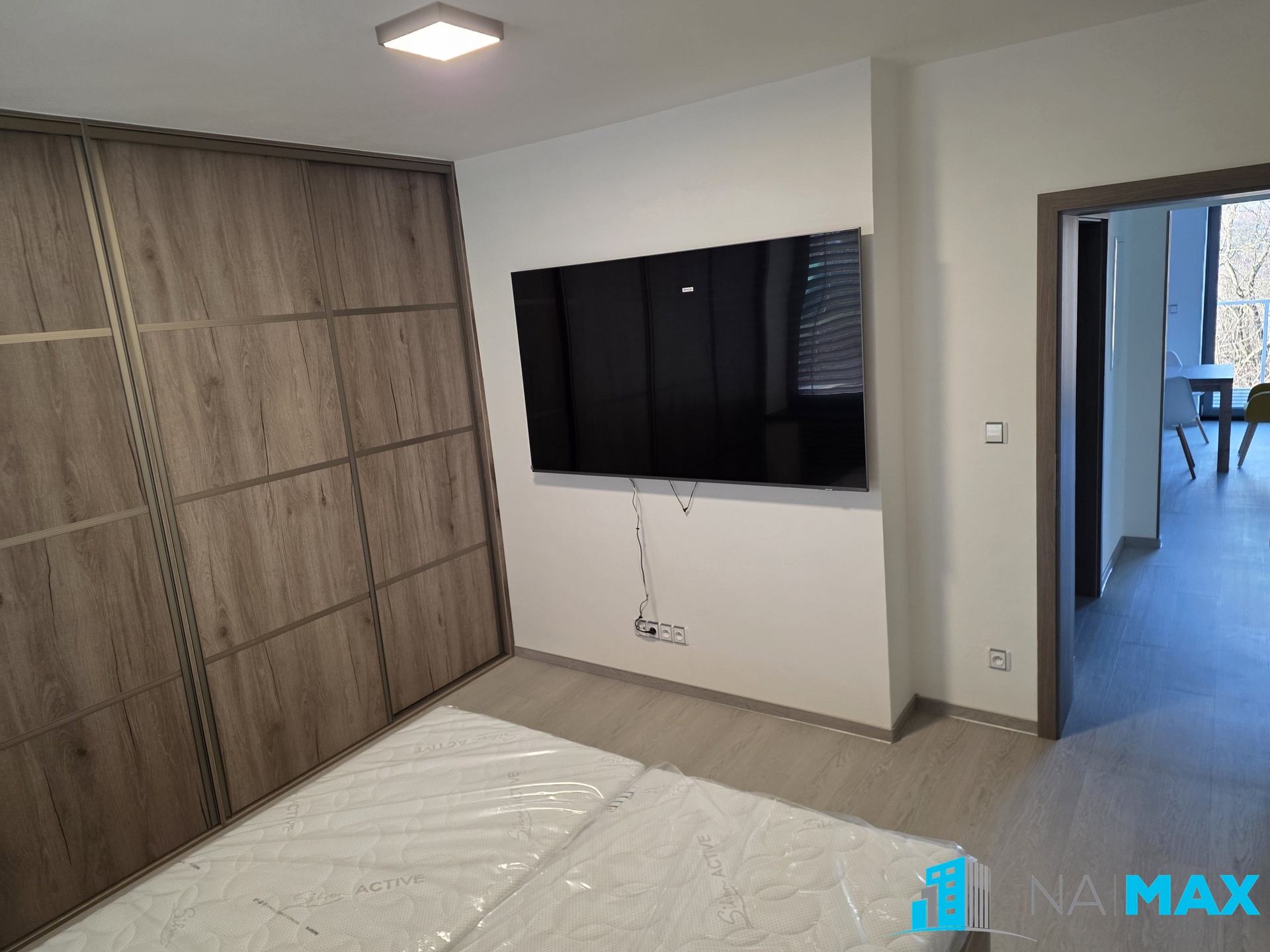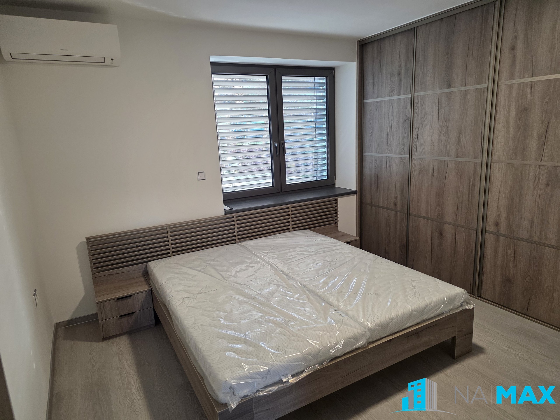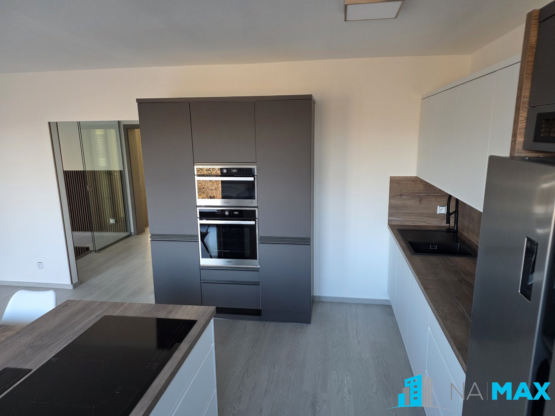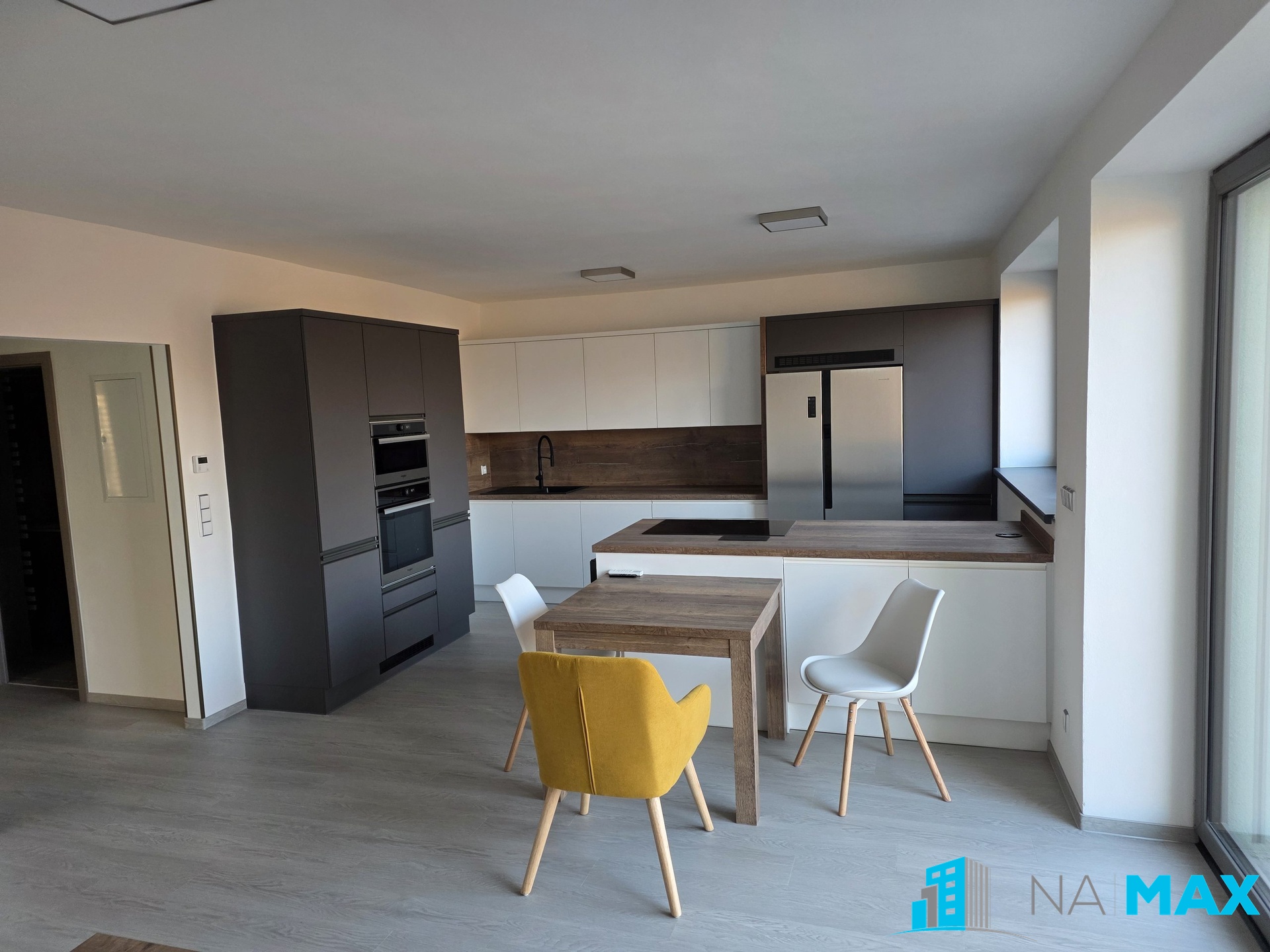 V kuchyni je nová kuchyňská linka s granitovým dřezem, vestavěná elektrická trouba, mikrovlnná trouba, indukční varná deska, myčka, americká lednice, stůl, židle. V obývacím pokoji sedačka, stůl, televizní komoda, televize. V ložnici vestavěná skříň, dvojlůžko s matrací, televize. V pokoji vestavěná skříň. Nová plastová okna s trojsklem mají předokenní žaluzie.