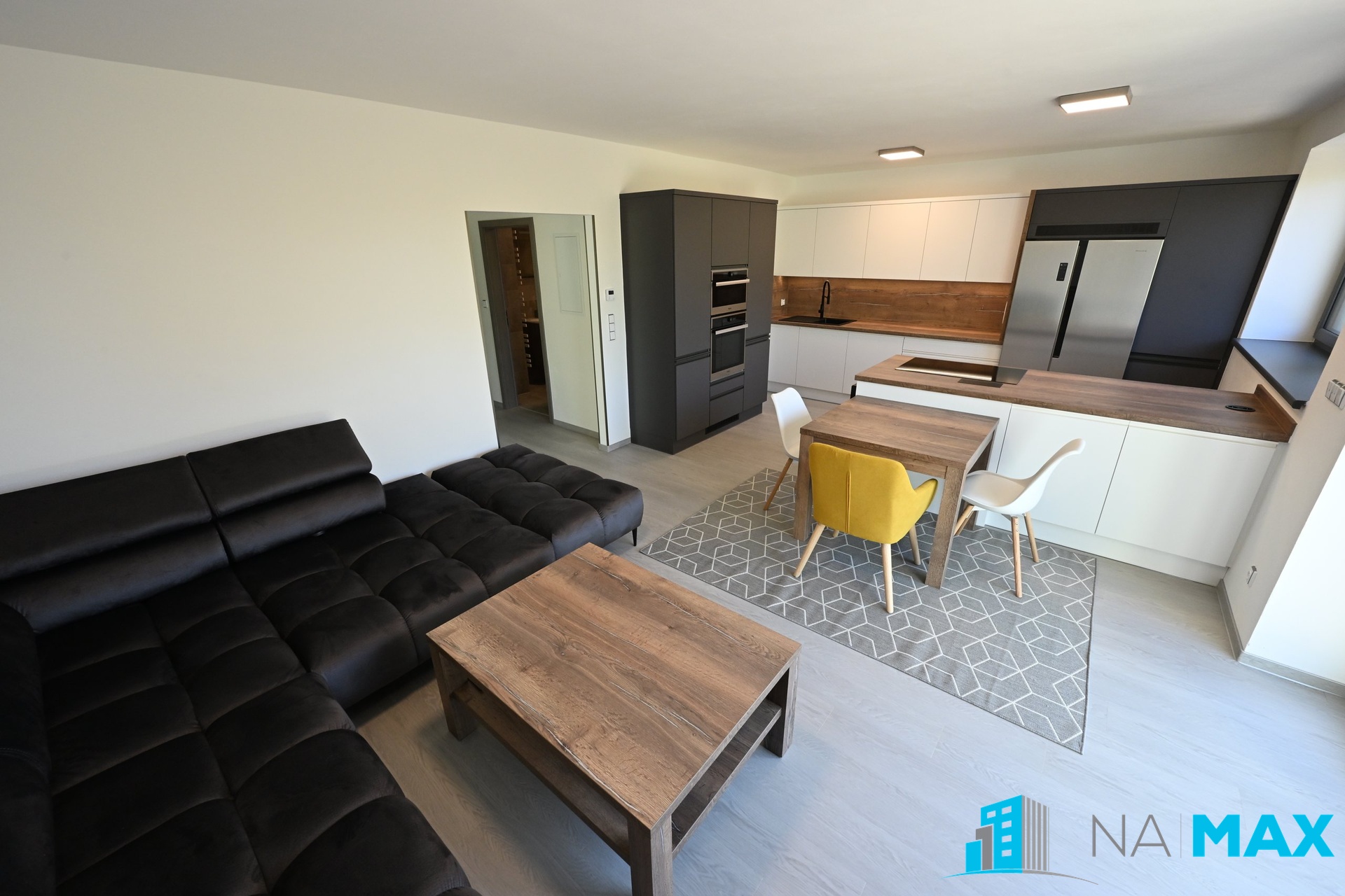 V kuchyni je nová kuchyňská linka s granitovým dřezem, vestavěná elektrická trouba, mikrovlnná trouba, indukční varná deska, myčka, americká lednice, vinotéka, stůl, židle. V obývacím pokoji sedačka, stůl, televizní komoda, televize. V ložnici vestavěná skříň, dvojlůžko s matrací, televize. V pokoji vestavěná skříň. Nová plastová okna s trojsklem mají předokenní i vnitřní žaluzie.