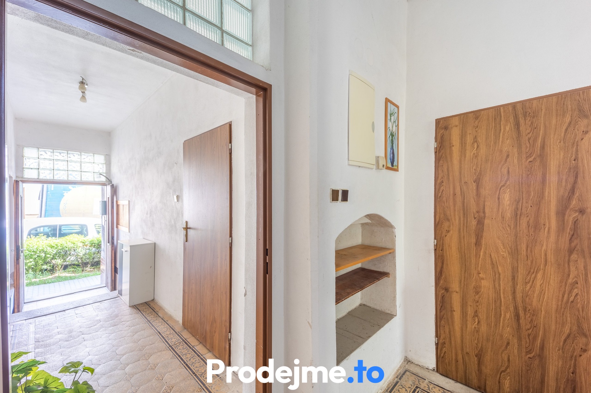Připravena k celkové rekonstrukci s plochou 28 m2. Jde o původní prostory garáže, kde v rámci výstavby bytové jednotky došlo ke zvýšení podlahy a současně má platné povolení k náhradě garážových vrat za okno. V budoucnu může mít obývací pokoj, jídelnu s kuchyňským koutem a koupelnu s toaletou.