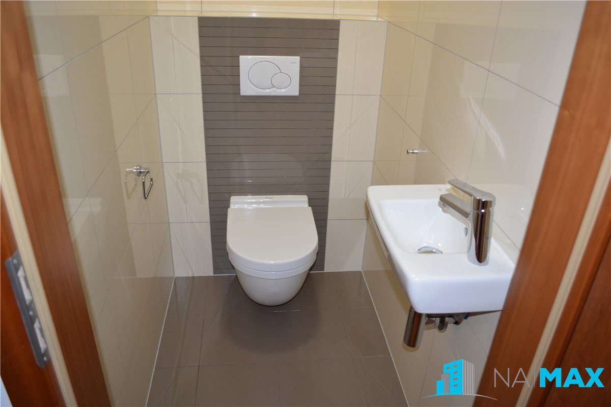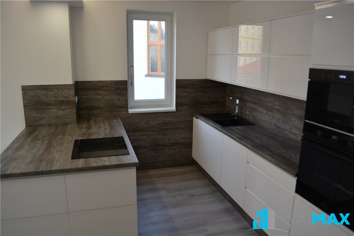 V kuchyni je nová kuchyňská linka s granitovým dřezem, vestavěná elektrická trouba, mikrovlnná trouba, indukční varná deska, myčka.