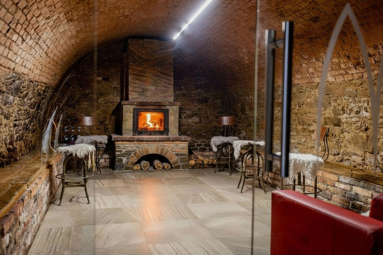 • Unikátní degustační místnost s krbem ve sklepě s kapacitou 30 osob