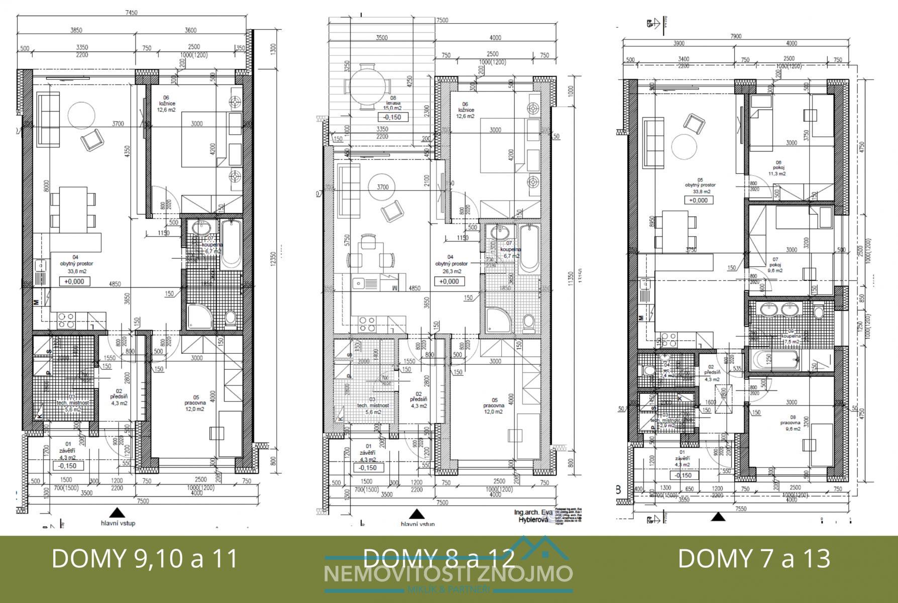 - Vedle nich menší domy 2x: 3+kk se zastřešenou terasou
