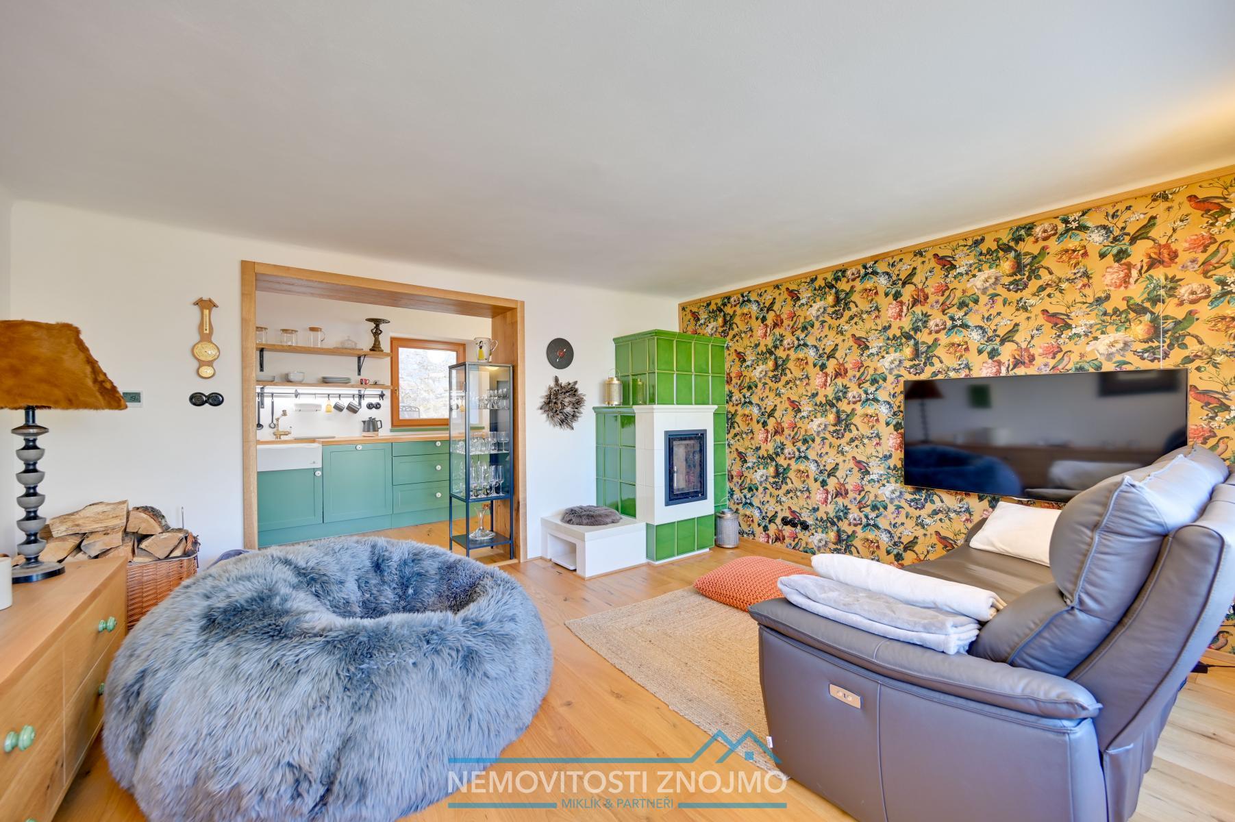 - Stylová kachlová kamna s hypokaustním systémem (náklad přes 500.000,- Kč) + krbová kamna v dalším pokoji