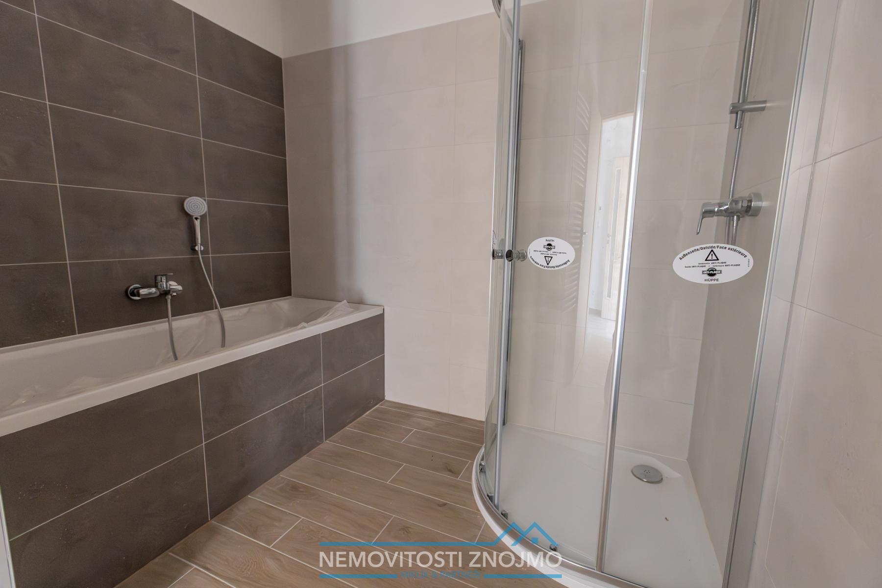 e.) koupelna s vanou a sprchovým koutem