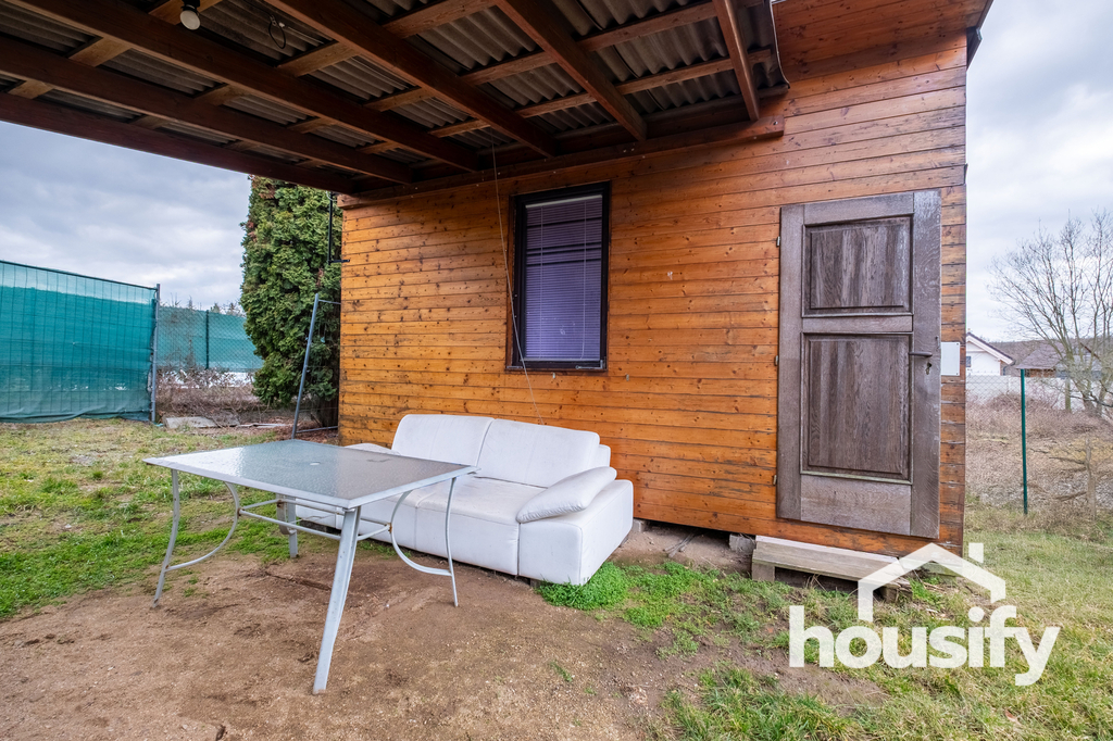 Na zahradě se nachází chatka s možností přespání, která poskytne zázemí pro víkendový pobyt nebo sezónní rekreaci. Pozemek je přístupný autem a parkování je možné přímo na pozemku.