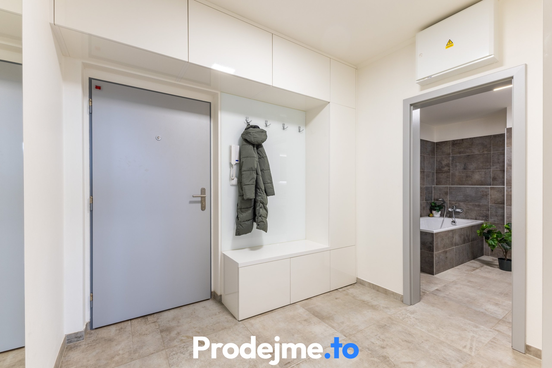 Koupelna je vybavena vanou, toaletou, umyvadlem, pračkou a dvěma otopnými žebříky. O úložné prostory je postaráno díky vestavné skříni na míru v chodbě a vlastnímu sklepu o velikosti 2,5 m2 v suterénu domu.