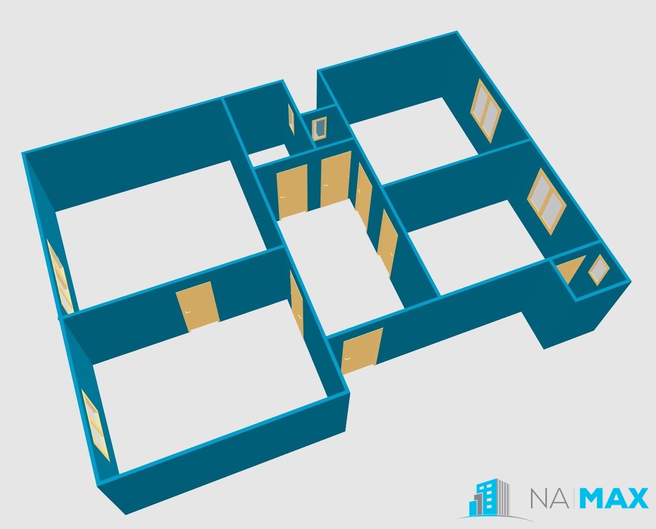Kuchyň, obývací pokoj, pokoje, ložnice, koupelna, WC, předsíň, komora. Okna z obývacího pokoje a pokoje jsou orientovány na JZ stranu, okno pokoje, kuchyně a komory na SV stranu.
