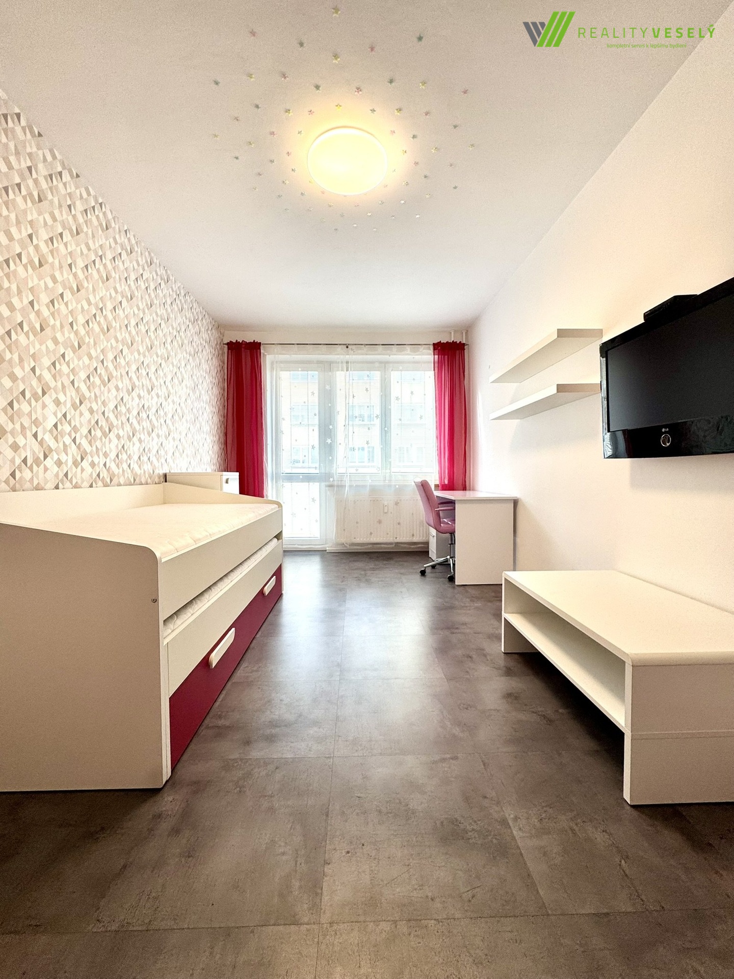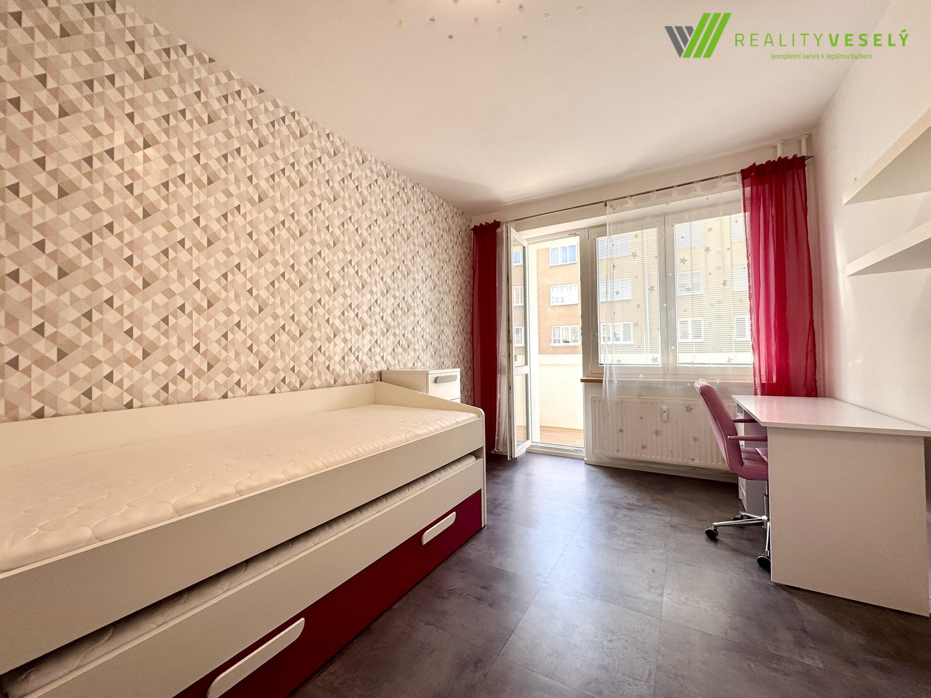 Na chodbu navazuje prostorný obývací pokoj s moderní kuchyní s vestavnými spotřebiči. Z obývacího pokoje se dále vchází do menší ložnice a také do dětského pokoje s výstupem na lodžií. Byt je po kompletní rekonstrukci, která zahrnuje nové rozvody vody, elektřiny či posuvné dveře do pouzdra značky Sapeli. Podlahy v bytě jsou kombinací kvalitního vinylu a dlažby. To vše podtrhuje atmosféru moderního a zdravého bydlení. Do inventáře bytu patří také moderní LED osvětlení v celém bytě. Parkování v okolí domu.