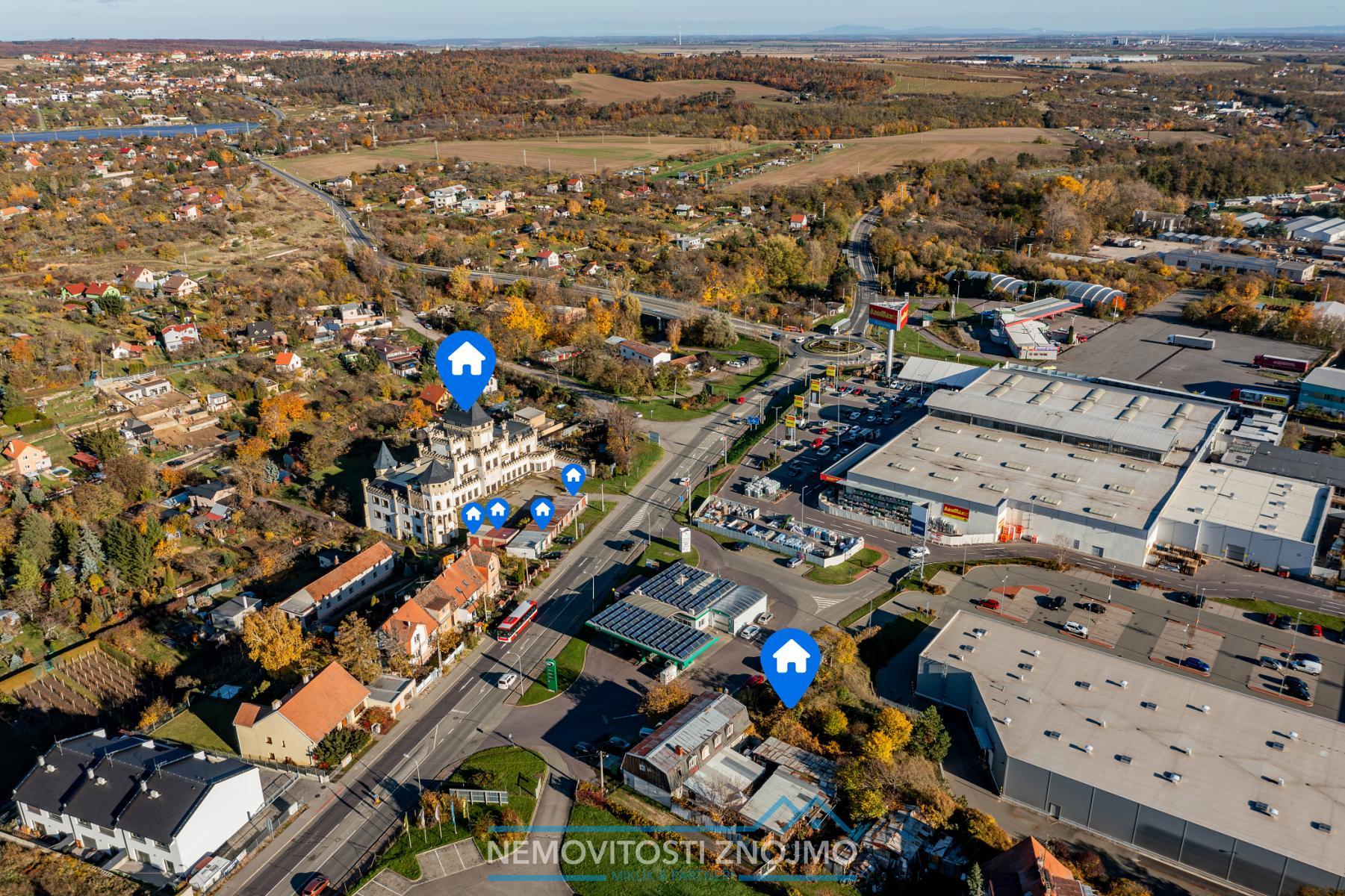 Vše můžete vidět přehledně ve fotografiích z dronu, kde jsou všechny jednotlivé nemovitosti naznačeny.
