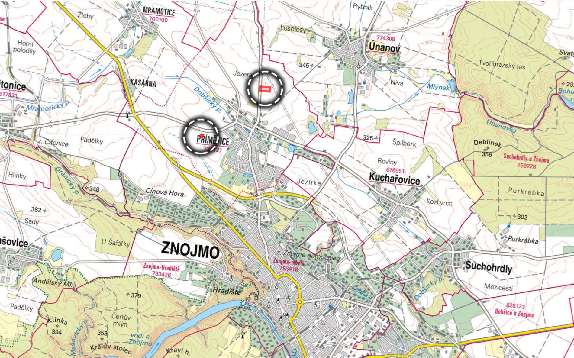 Nabízím k prodeji zemědělské pozemky ve výlučném vlastnictví o celkové výměře 21 178 m v katastrálním území Přímětice, obec Znojmo. Pozemky jsou zapsány na listu vlastnictví č. 454 a tvoří je parcely č. 232/3 a 498/9, obě vedené jako orná půda.