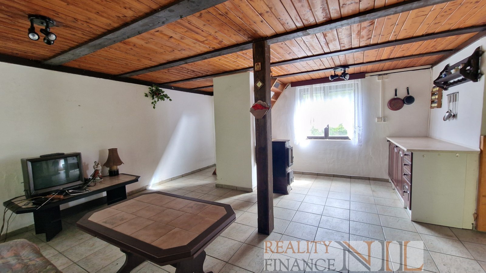 Vybavení chaty: chata je vybavena kuchyňskou linkou vč. spotřebičů (elektrické sporák, lednička), v obývacím pokoji je krb a krbová kamna. Ostatní zařízení zůstane dle dohody.