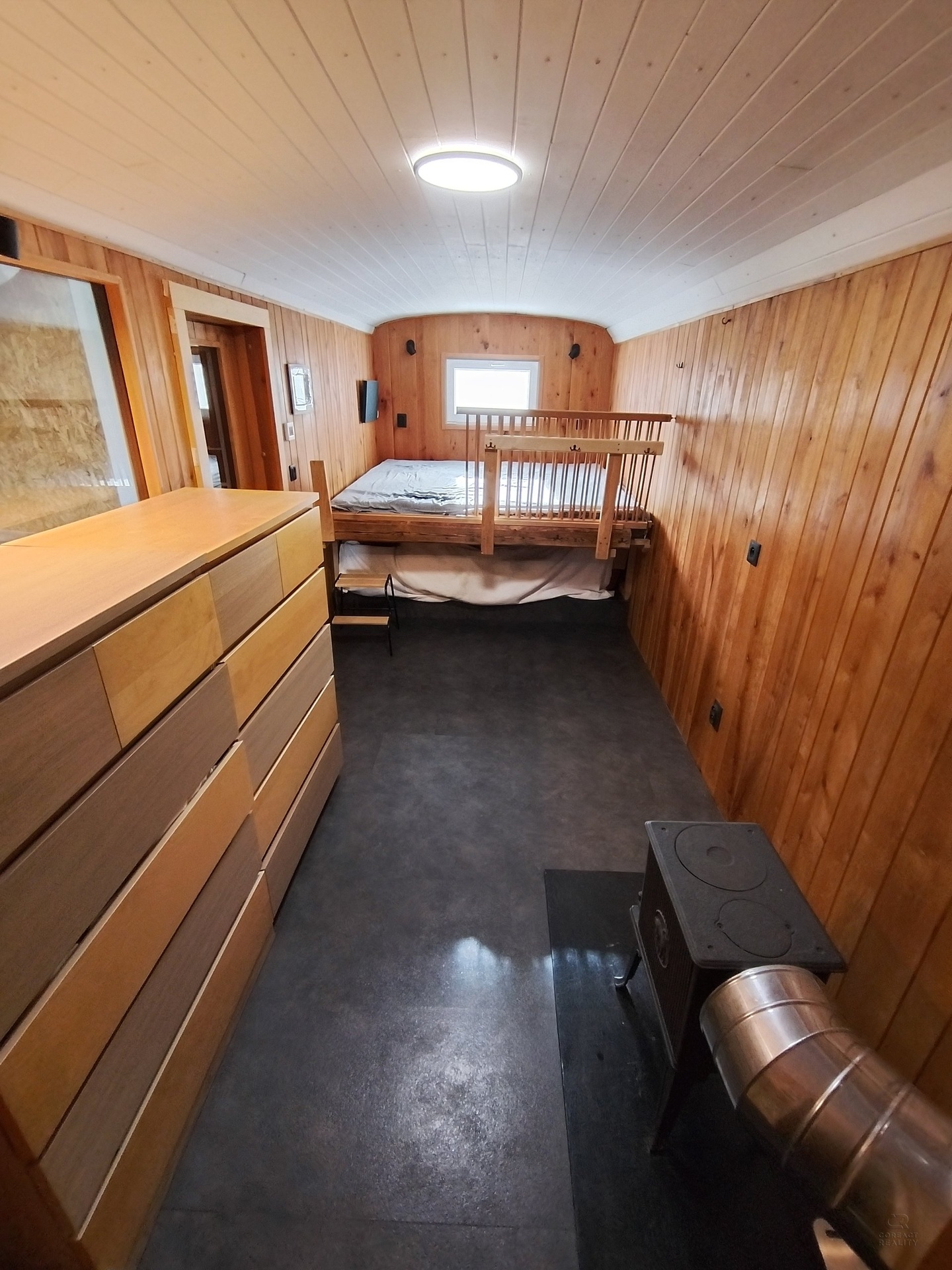 Tiny House u domu má užitnou plochu cca 33 m2. Vytápění zajišťuje dřevo v kombinaci s elektřinou (kamna, podlahové vytápění). Tiny House je připojený na vodovod a odpad je napojen na potrubí staršího domu. Ložnice je čistá dřevostavba se sálavým podlahovým vytápěním a sociálním zařízením. Kuchyň s jídelnou je robustní dřevostavba s hliněnou omítkou a podlahou. Prosklené strany jsou exponované na dopolední slunce a v době svitu místnost zcela vytopí. Navíc je vidět fantastický výhled až na Biskupskou kupu do Zlatych Hor.