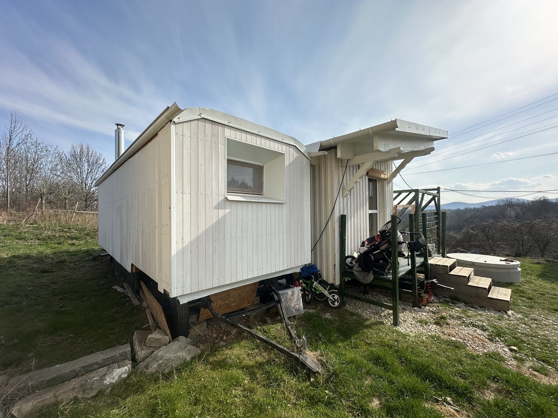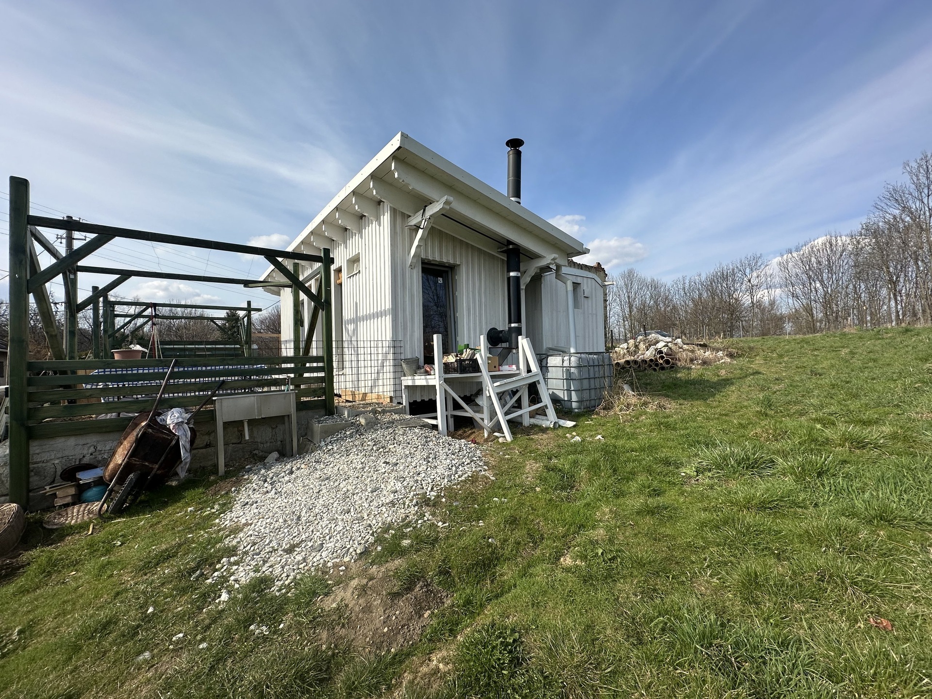 Na terasu Tiny House navazuje zeleninová zahrada a velký záhon s ovocnými keři (maliny, rybízy v plné plodnosti, odrůstající muchovníky, angrešty, josty, rakytníky). Pod zeleninovou zahradou se nachází ovocný sad v posledním stádiu života. Tiny House je v současné době obýván čtyřmi osobami.