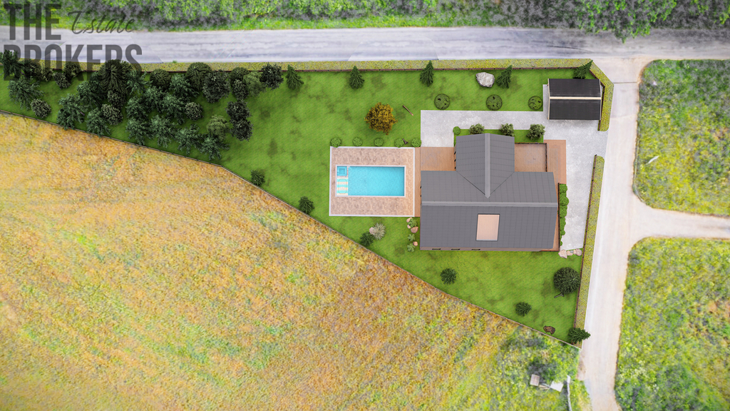Pozemek má mírně svažitý terén a je tvaru trojúhelníku, což umožňuje zajímavé architektonické řešení domu i zahrady. Přes užší část parcely vede nadzemní elektrické vedení o napětí 22 kV, s nímž je nutné při plánování stavby počítat.